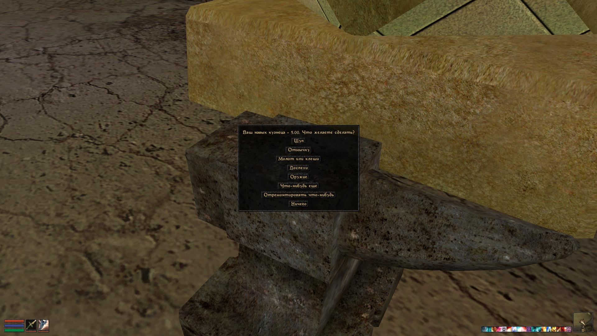 Кузнечное дело — Можно делать доспехи, оружие, переплавлять руду, доспехи и оружие в слитки. Вам понадобятся молот и клещи. Чтобы что-нибудь выковать нужно активировать наковальню, а чтобы расплавить — горн.