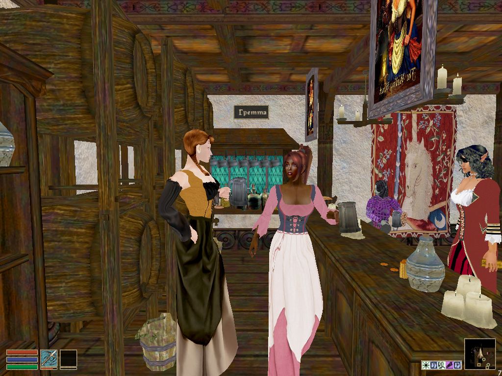 - Хотите выпить или потанцевать? Или, может быть, комнату, которую можно арендовать, пока вы покупаете одежду для девиц? Тогда остановитесьв таверне в Кальдере, рядом с магазином оружейника, эта сумасшедшая таверна знаменита своими развлечениями. Наверху вы найдете магазин.