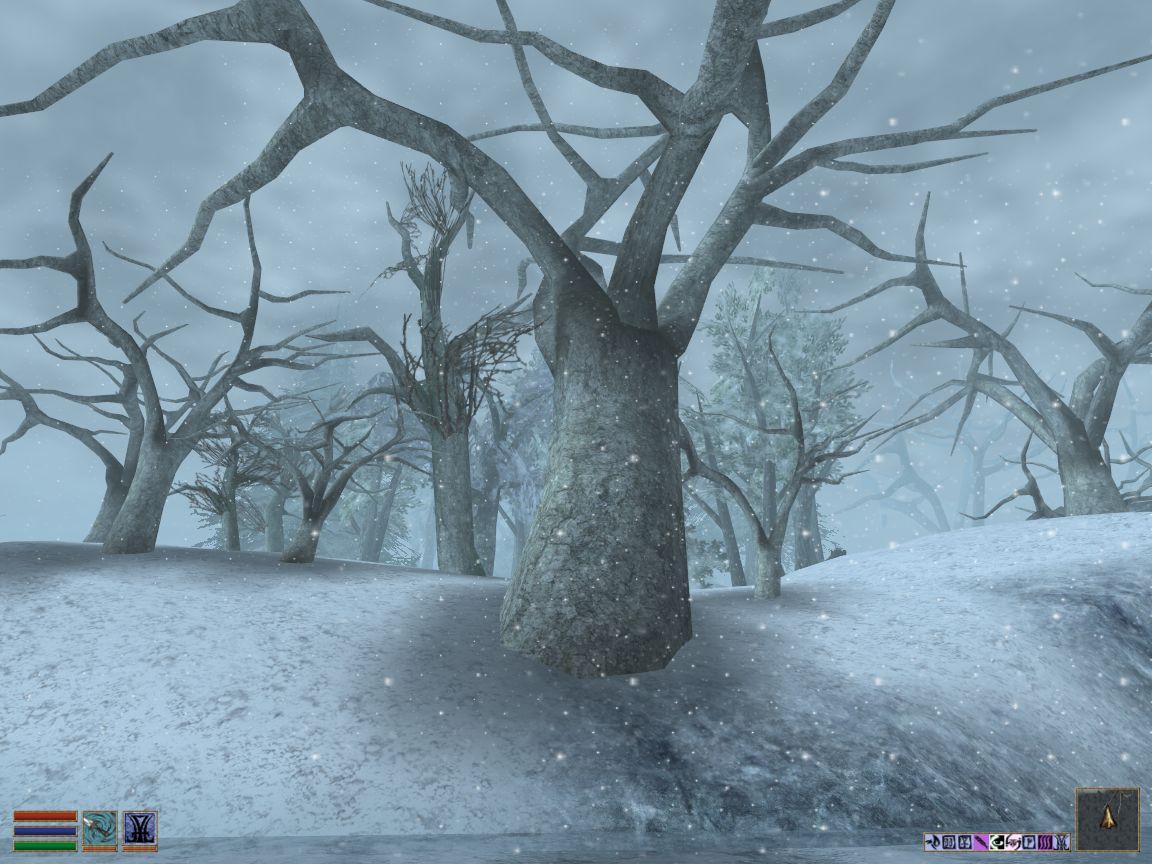 Снег иногда мешает бить врагов из-за специфики своей модели, так же, как и некоторые деревья.