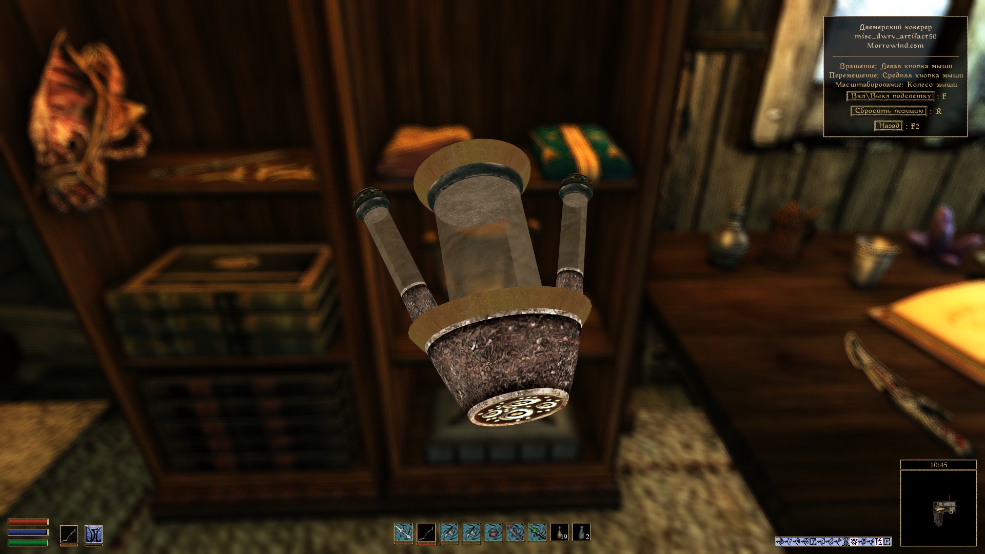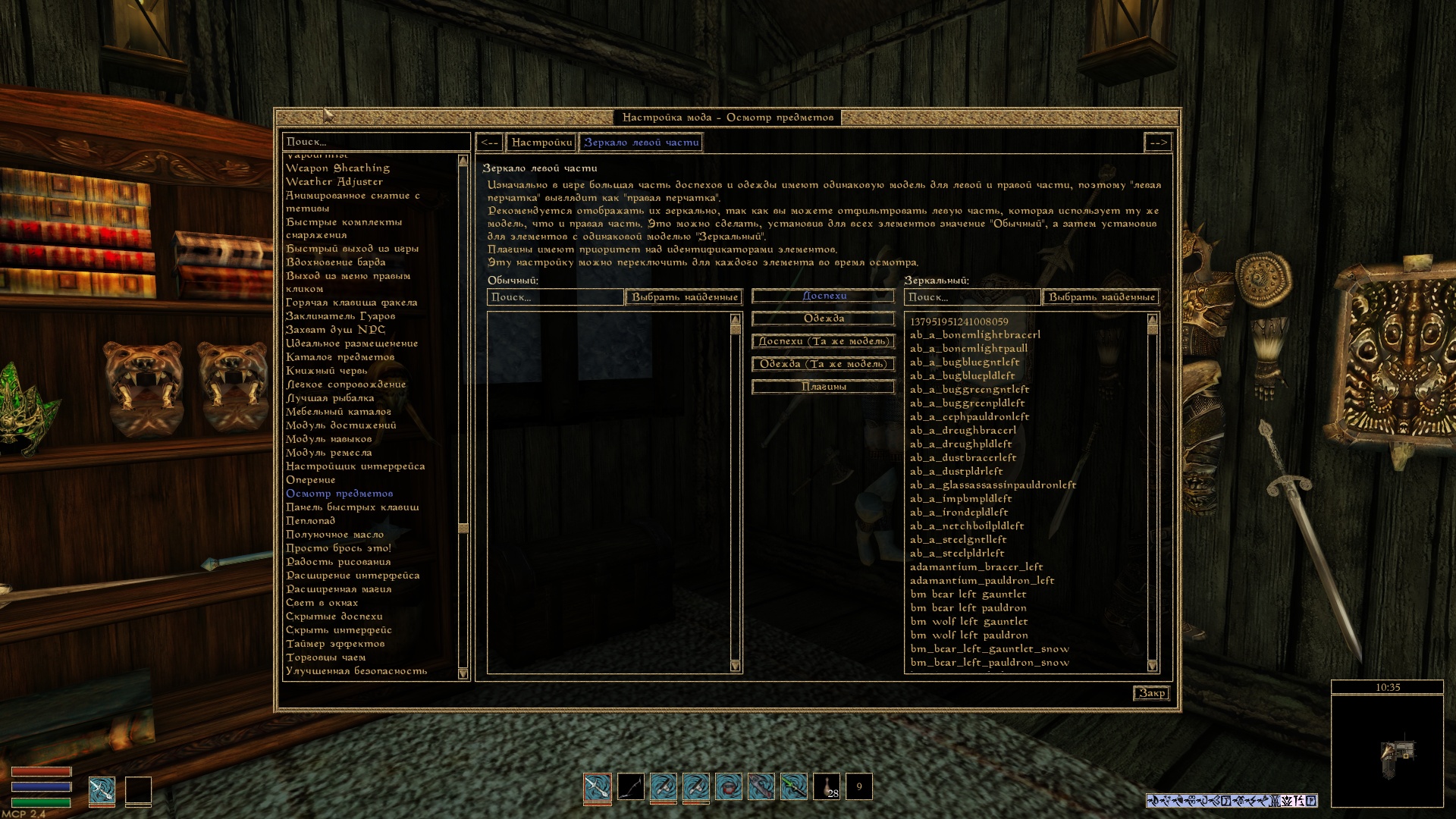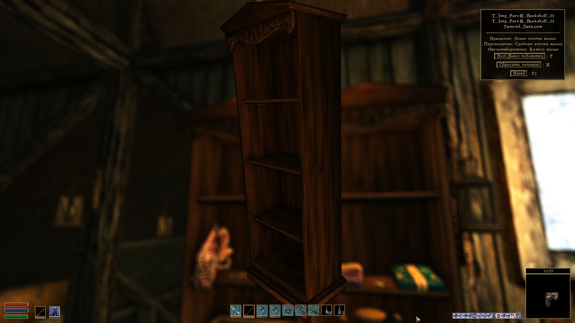 - переключиться на другой вид предмета, при его наличии. Например, вариант доспехов и одежды одетый или размещенный на поверхности, оружие в ножнах (при использовании мода Weapon Sheathing) или содержимое книг и свитков.