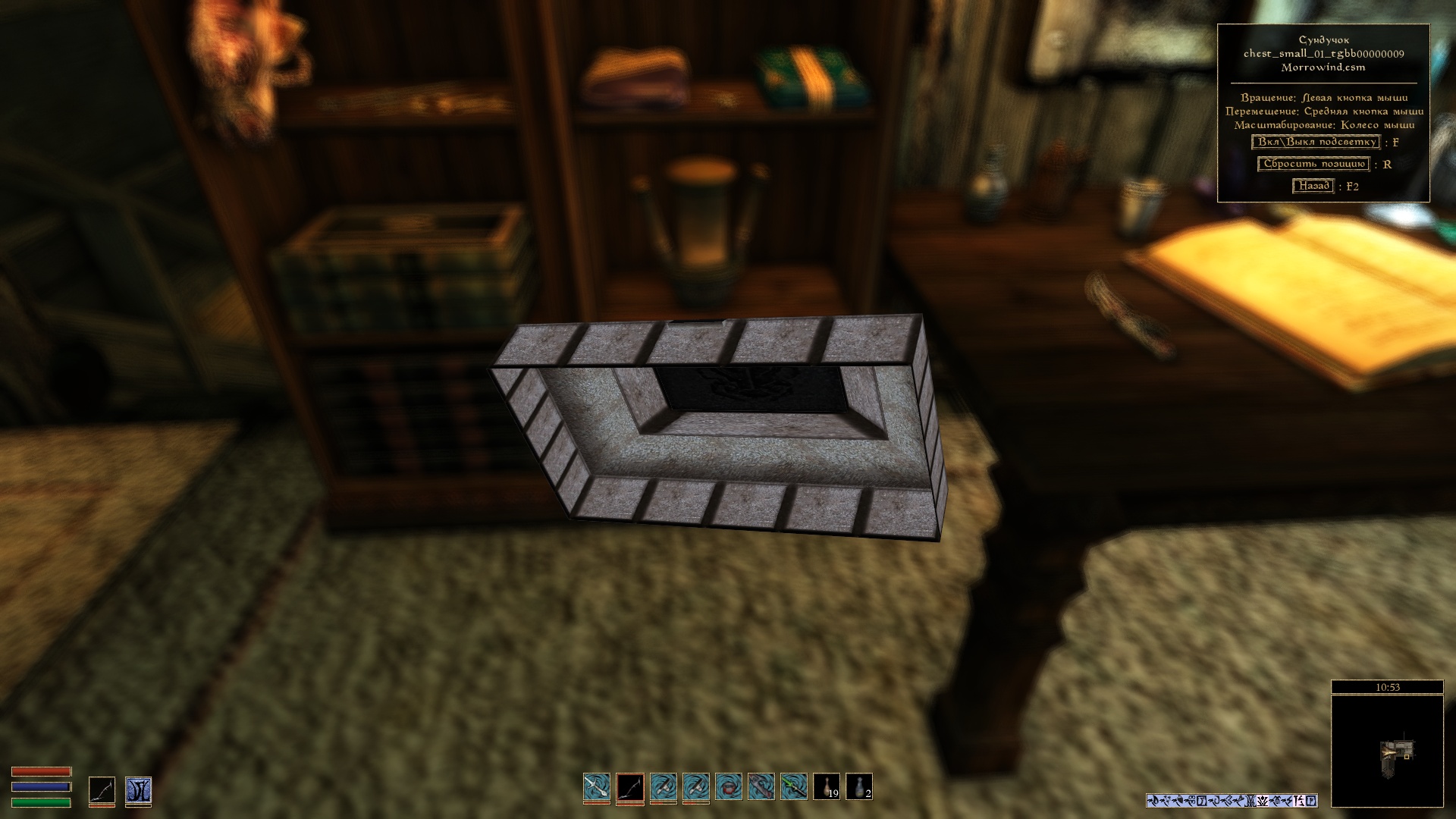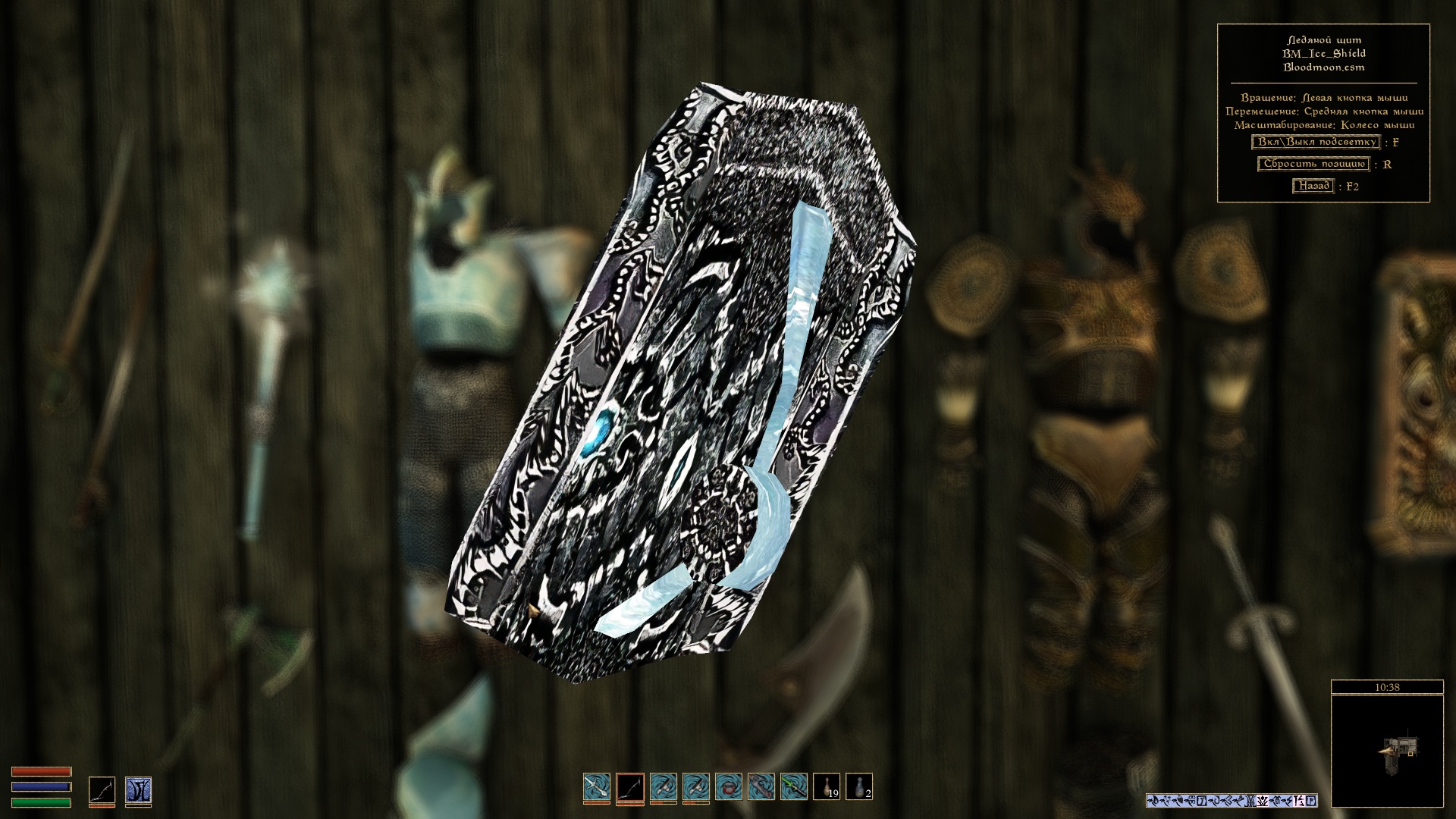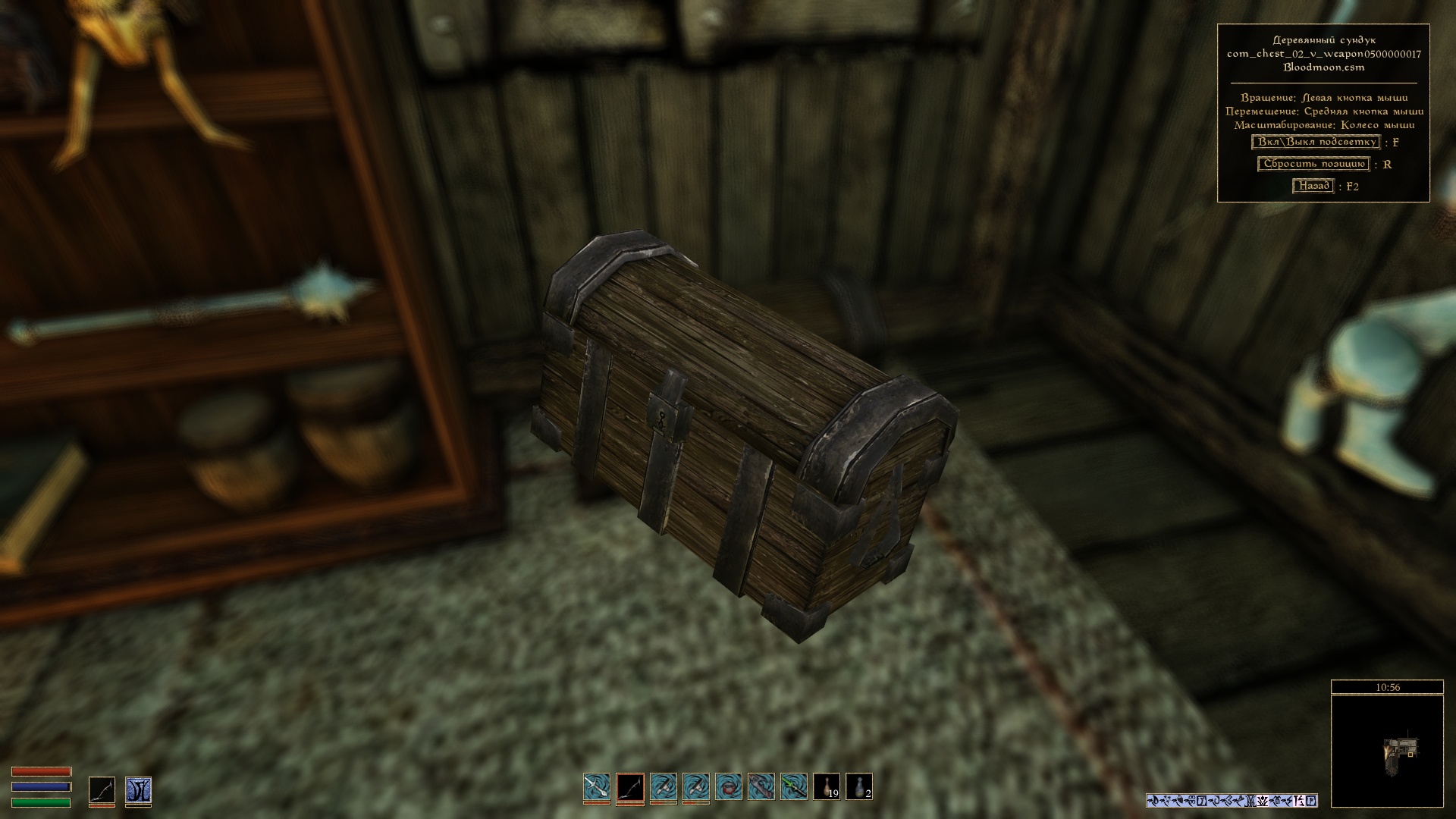 - переключиться на другой вид предмета, при его наличии. Например, вариант доспехов и одежды одетый или размещенный на поверхности, оружие в ножнах (при использовании мода Weapon Sheathing) или содержимое книг и свитков.