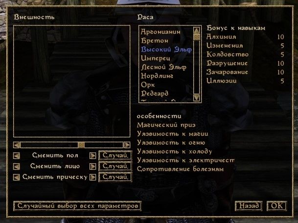 Мод добавляет кнопки для случайного выбора расы, внешности, класса и знака рождения.