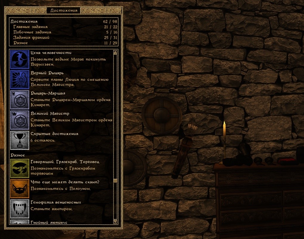Это небольшой мод - интеграция, добавляет 17 достижений для мода Вирмхэвен на основе The Achievement Framework.