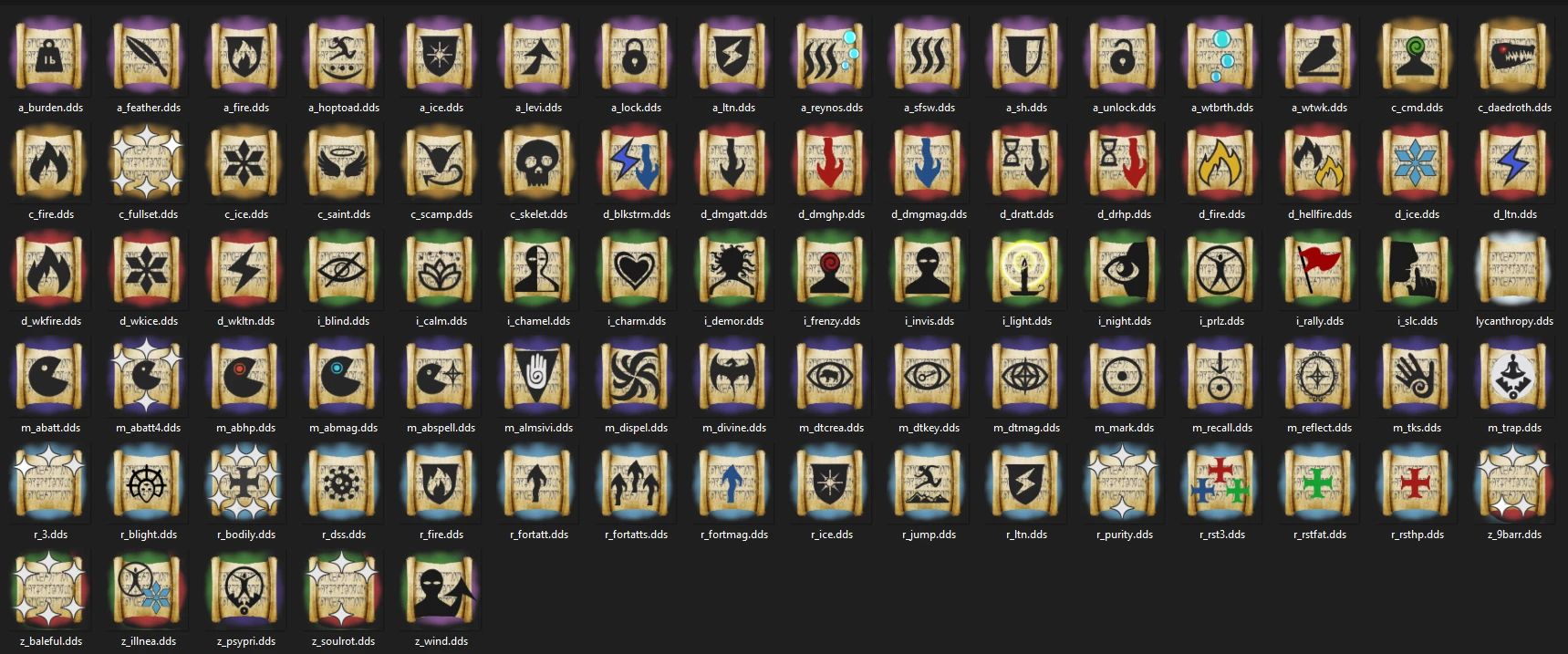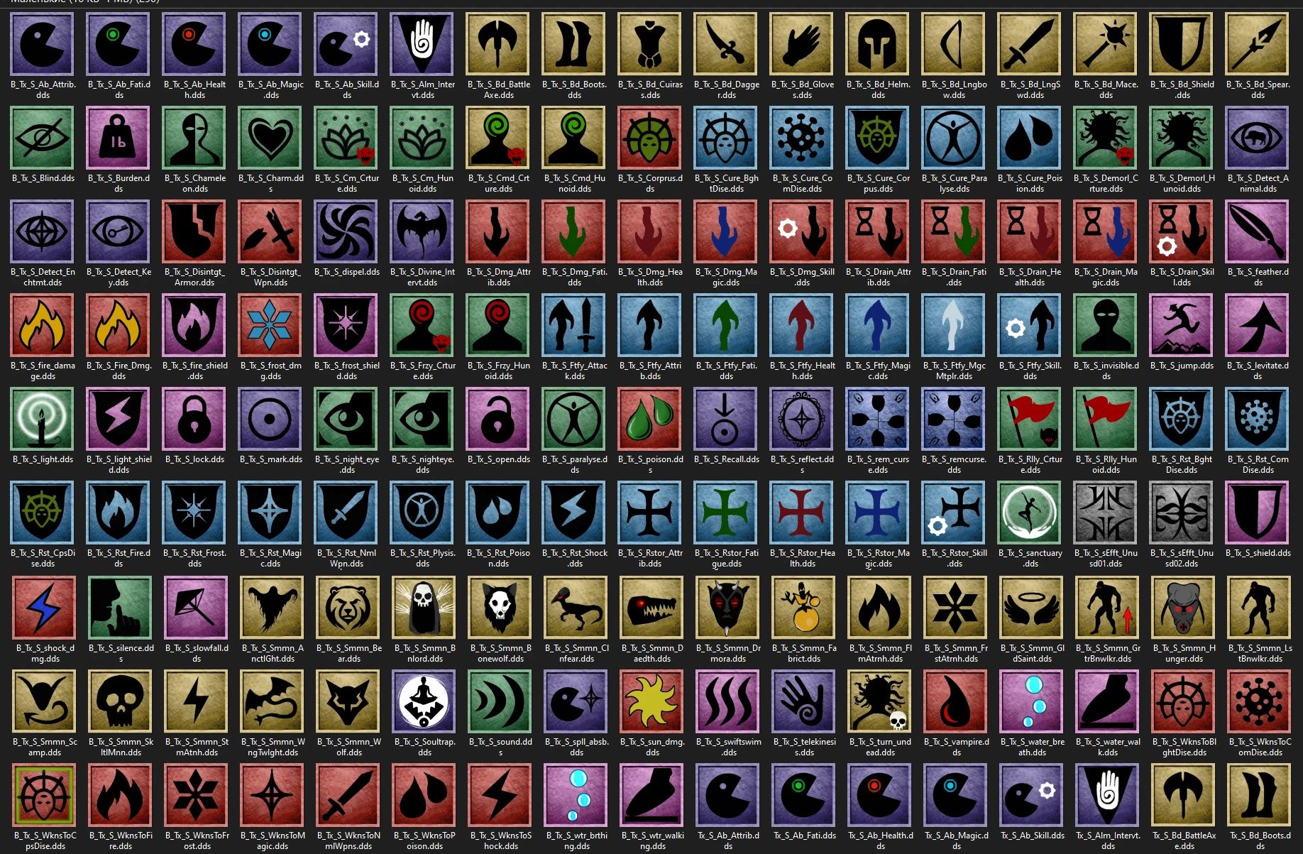 Магические эффекты – простой реплейсер, в комплекте идут ванильные иконки для безоружного боя и стелса, иначе они смотрятся плохо на фоне новых.