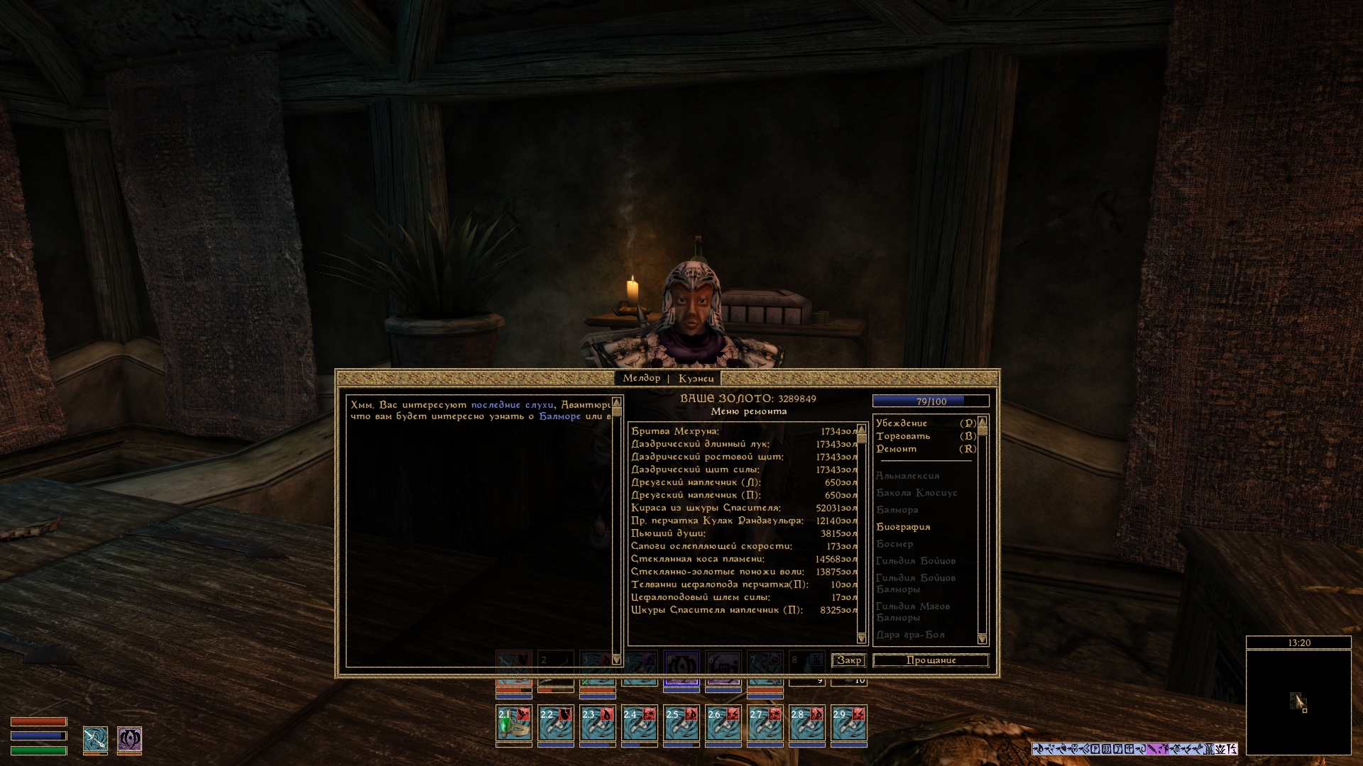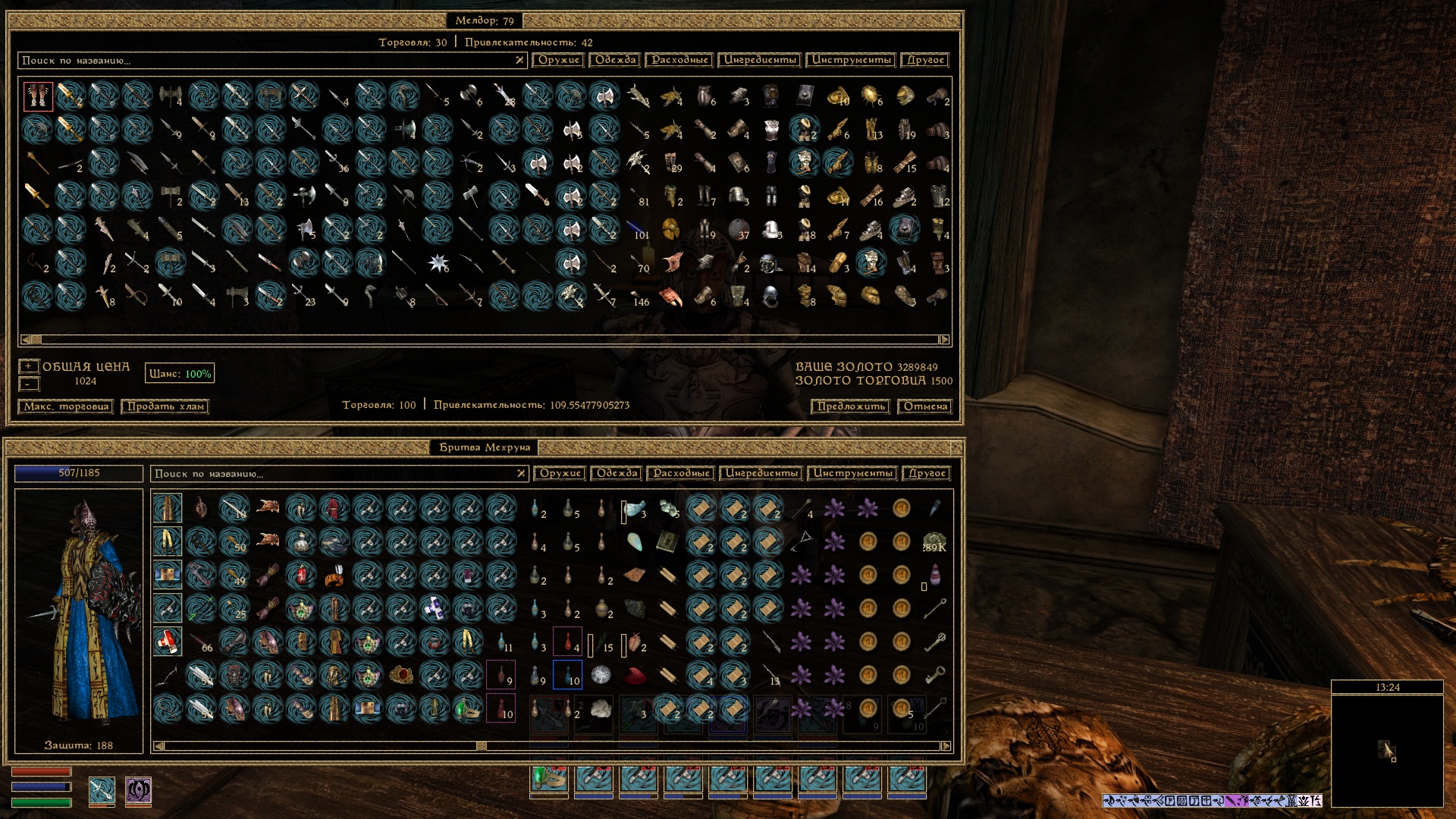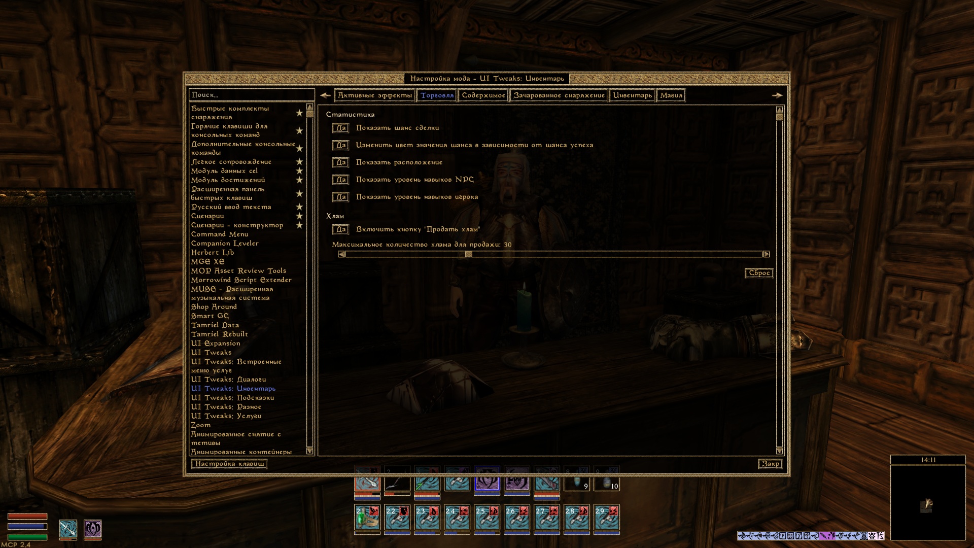 - Отображение в окне торговли информации о навыках торговца и игрока.