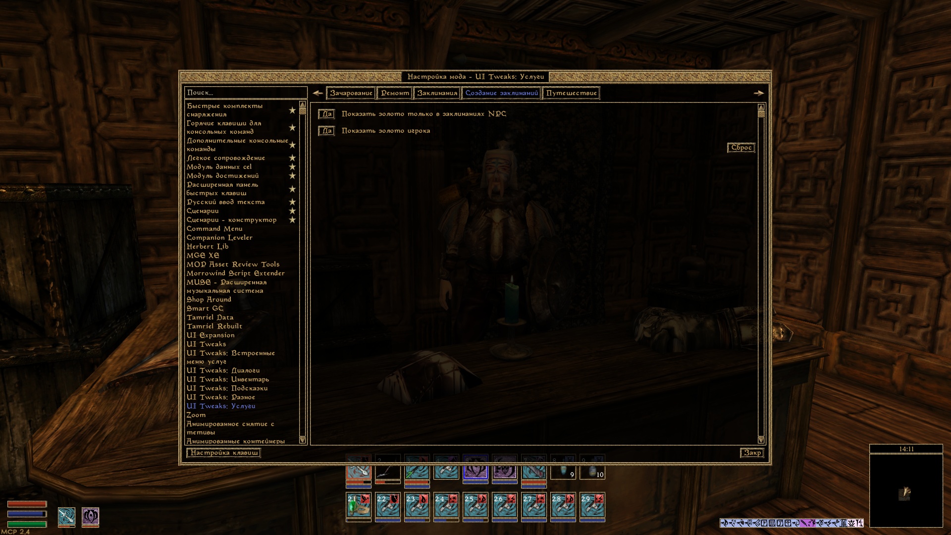 - Отдельное окно в инвентаре для зачарованных предметов.