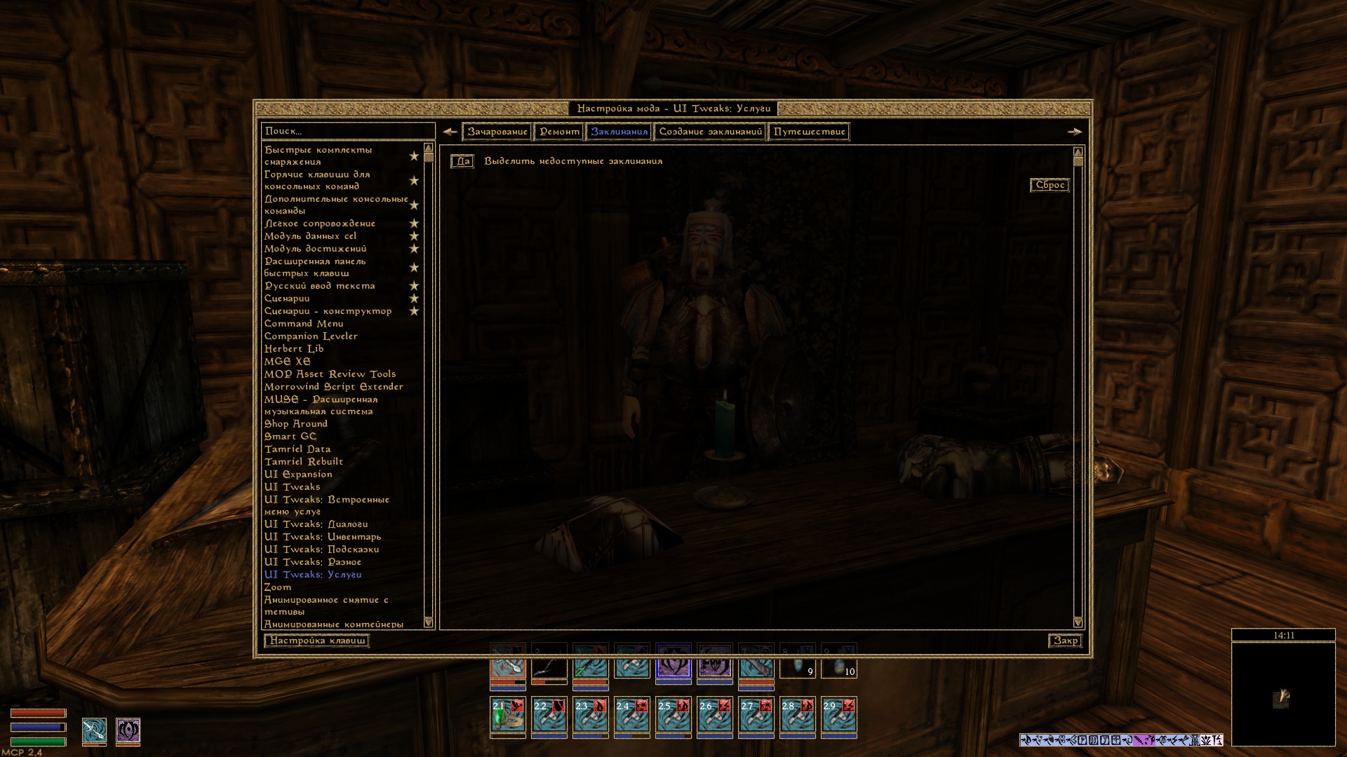 Меню зачарования