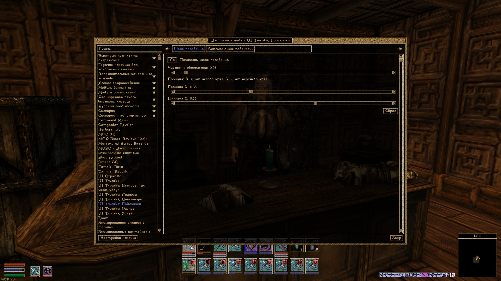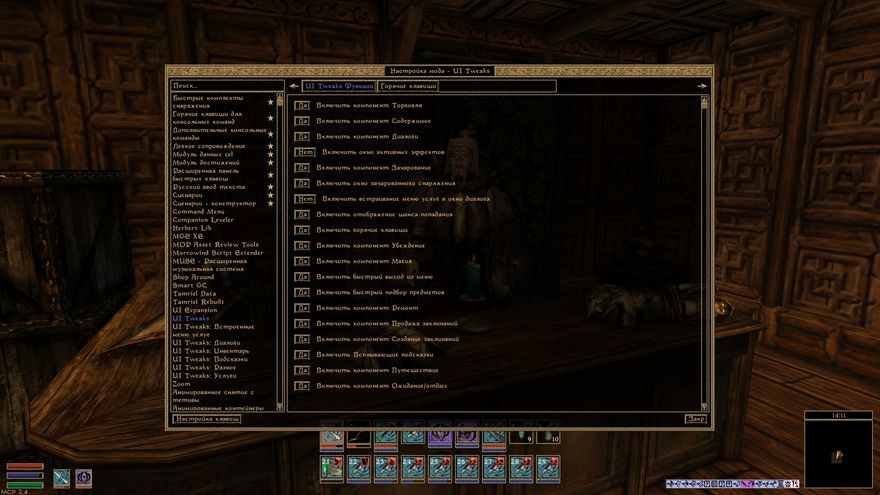 - Большинство функций можно включить\выключить и настроить вменю настройки мода.
