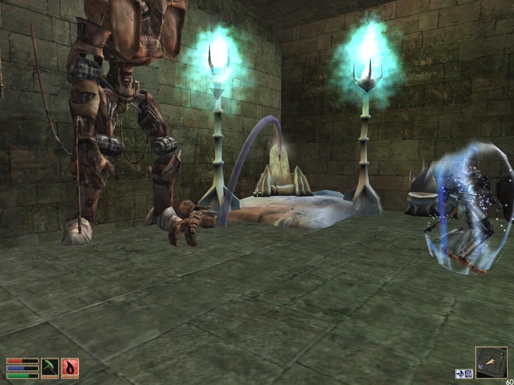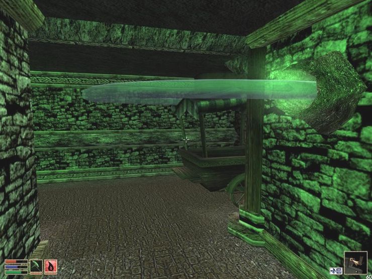 при выходе из дома в водяной проход до момента выхода из воды "S" - персонаж идет спиной вперед "W" - назад; при выходе из воды перед дверью в Балмору - назначение клавиш восстанавливается "W" - вперед, "S" - назад, но персонаж при этом все равно смотрит в камеру лицом, а не спиной.