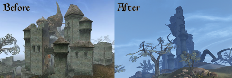Мод делает Тель Вос гораздо, гораздо выше прежнего. Отныне башня господствует над Грейзлендом, а с парадного крыльца Господина Ариона открывается головокружительный вид. Кроме того, Господина Ариона теперь охраняет элитная группа боевых магов, патрулирующих наружный периметр крепости.