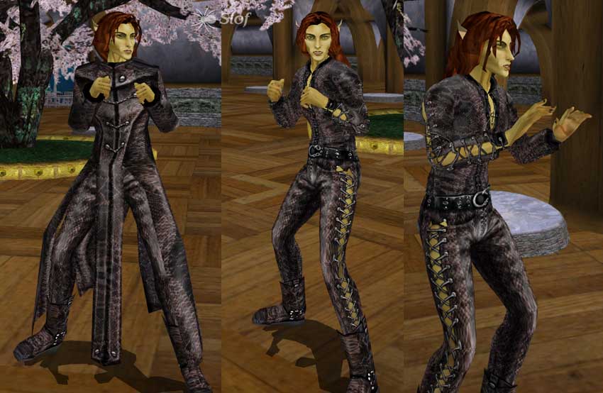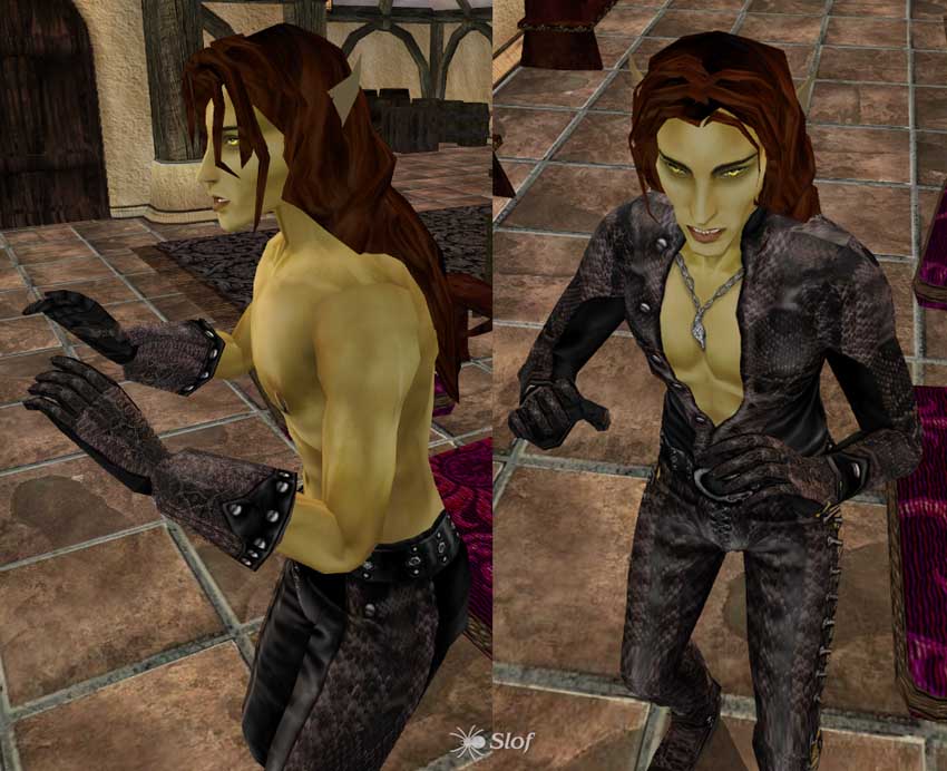 Наконец то позаботились о мужских персонажах и как! Представляем вам первый из двух Готических магазинов от AlienSlof - потрясающий выбор мужской одежды от самых провокационных и двусмысленных нарядов до прекрасных дворянских костюмов. Все - от пирсинга, боди-арта и ошейников - до шелковых рубашек, изысканных роб и кожаных пальто. Вещи из змеиной кожи, шотландские костюмы, парики и шляпы, готические наряды, баланс на грани неприличия и роскоши - трудно было бы с ходу перечислить то что там есть - в этот без сомнения уникальный и очень тщательно сделанный мод обязательно нужно играть.