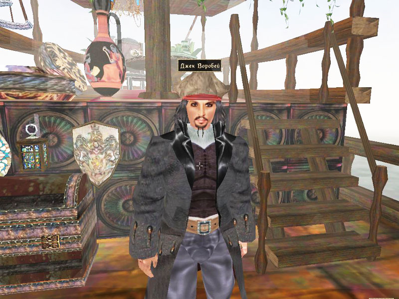 Этот Мод добавляет пиратское судно возле Эбенгардa и одежду. Судно скрывается в тумане. Поплавайте в море и найдете его. На борту судна знаменитый Джек Воробей. Джек скрывается в Морровинде. Денег у него нет - вот и приходиться ему торговать.