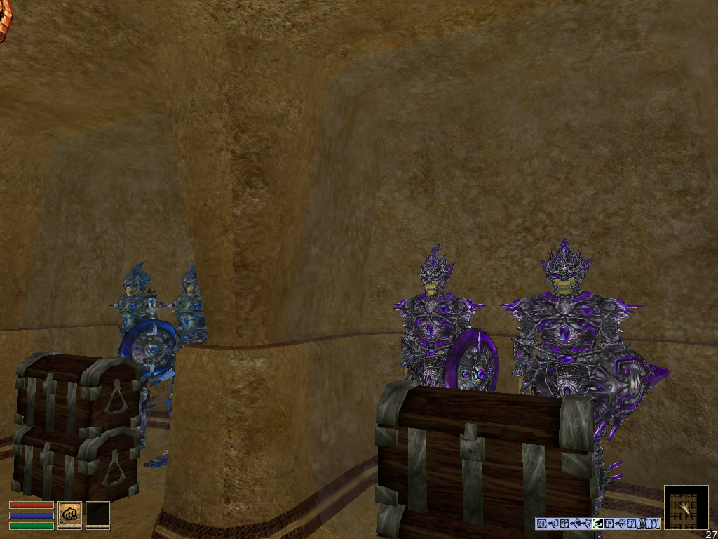 Загружена вторая версия плагина. Вторая версия плагина содержит два исполнительных файла. Один исполнительный файл (u26_armor aggregate.esp): аналог того, что и был; во втором исполнительном файле (u26_armor divided.esp) все боковые коридоры склада выполнены отдельными локациями. Надеюсь, это поможет при попадании в локацию. Также во втором исполнительном файле одна из дверей ведет в помещение, где находятся только сундуки с доспехами, без персонажей.