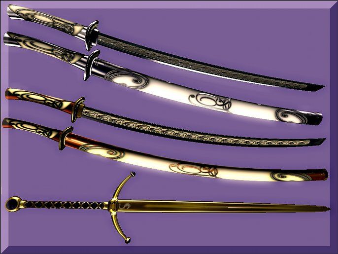 - «Спокойствие» — более длинный меч с той же детализацией, как и "Мир и Гармония", но с другой окраской отражающих поверхностей. Этот меч также сопровождается ножнами с моделями вложенного в них клинка и без него.