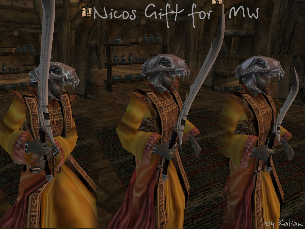 Плагин добавляет новые клинки Нико: кинжал, короткий меч, длинный меч + правый как щит (т.е. парные клинки) и двуручный меч.