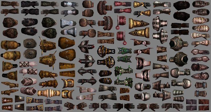- У некоторых левых/правых Двемерских, Стеклянных, Оркских, Имп.кольчужных наручах и наплечников заменены модели на соответствующие GND.