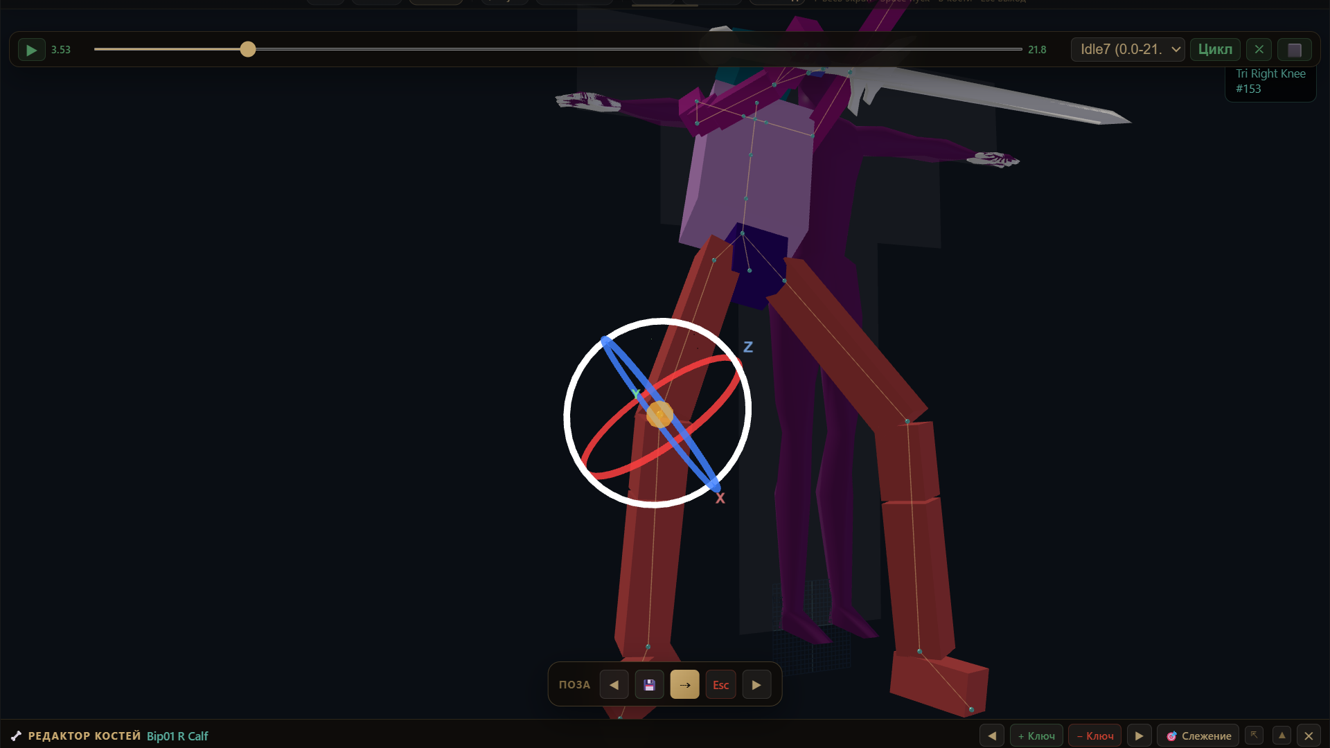 - инструменты редактирования, связанные с костями;