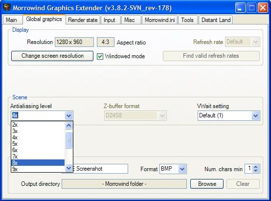 Для работы программы должен быть установлен Bloodmoon или последний патч к Морровинду, а также нужна видеокарта GeForce 4 Ti (на MX работать не будет!) и старше или Radeon 8500 и старше, а лучше GeForce 6 / Radeon 9600.