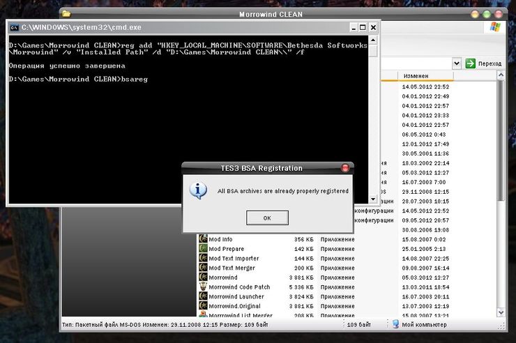 Бса-регистратор предназначен для внесения имени бса в ini-файл Морровинда.