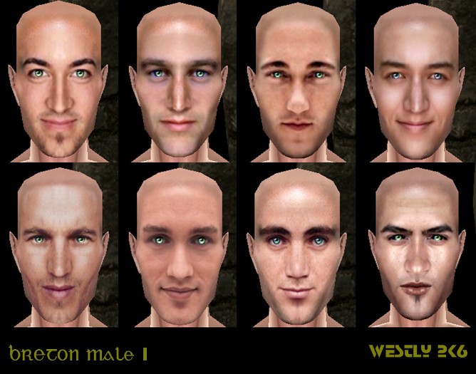 Этот большой плагин представляет из себя сведенный сборник из 11 комплектов игровых лиц от Westly. Просто невозможно было пройти мимо такого прекрасного качества, отменные модели и текстуры, замечательные женские и мужские лица для всех гуманоидных рас. Так как они как-то сложно требуют друг друга, то все 11 плагинов сведены в один большой с одним есп для большего удобства. Так же в плаге есть и прически. Вообще смотреть на эту работу одно удовольствие. Внимание! Лица НПС не меняются. Плагин предназначен для игрока.