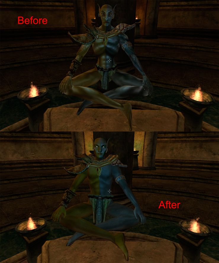 Этот мод заменяет модель и текстуры бога Трибунала Вивека на новую, сделанную на основе тел плагина Better Bodies.