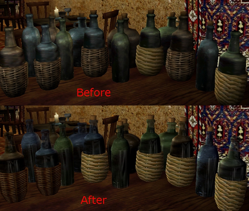 Заменяет 15 моделей бутылок в Morrowind с лучшими моделями и текстурами.