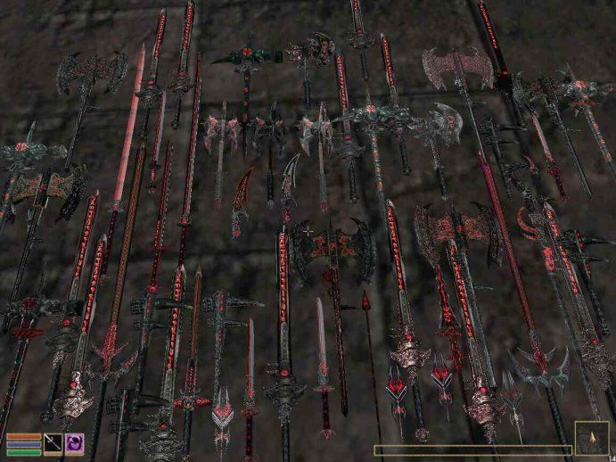 Собственно второй, из возможной серии, улучшателей внешнего вида оружия Морровинда с использованием новых технологий тектурирования. Ревизия вторая. Даэдрическое оружие.