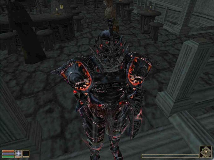 Кардинальное улучшение даэдрической брони. Блестит, светится в темноте, отливает и вообще всячески демонстрирует что сделана из металла а не из скажем глины.