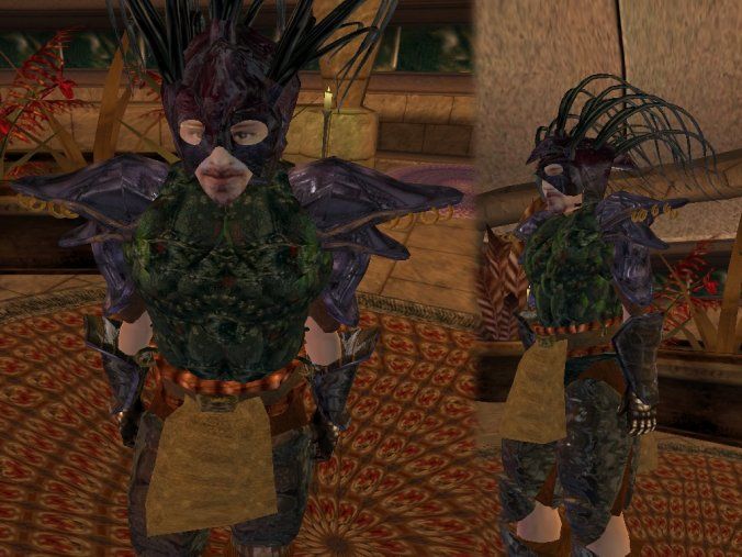 Наконец-то ловкие руки автора, смело применяющего на своих моделях казавшиеся невероятными эффекты, добрались и до скромной хитиновой брони. Ранее непопулярная как раз отчасти изза своего непроработанного внешнего вида броня стала выглядеть не хуже любой артефактной красоты и к тому же гораздо более близка внешне к своему названию - теперь это настоящий, узнаваемый хитин.