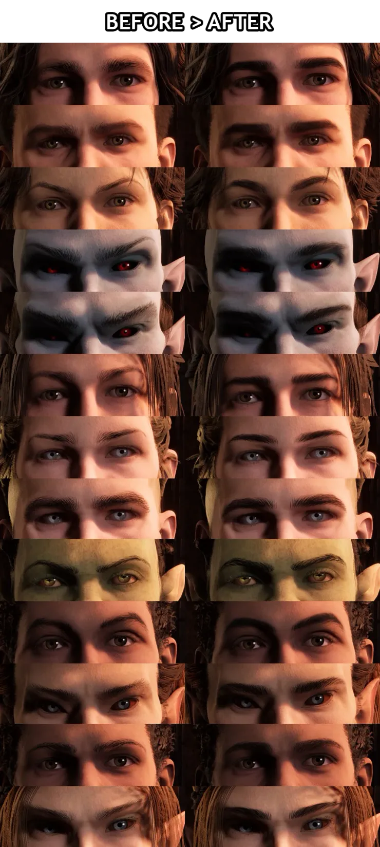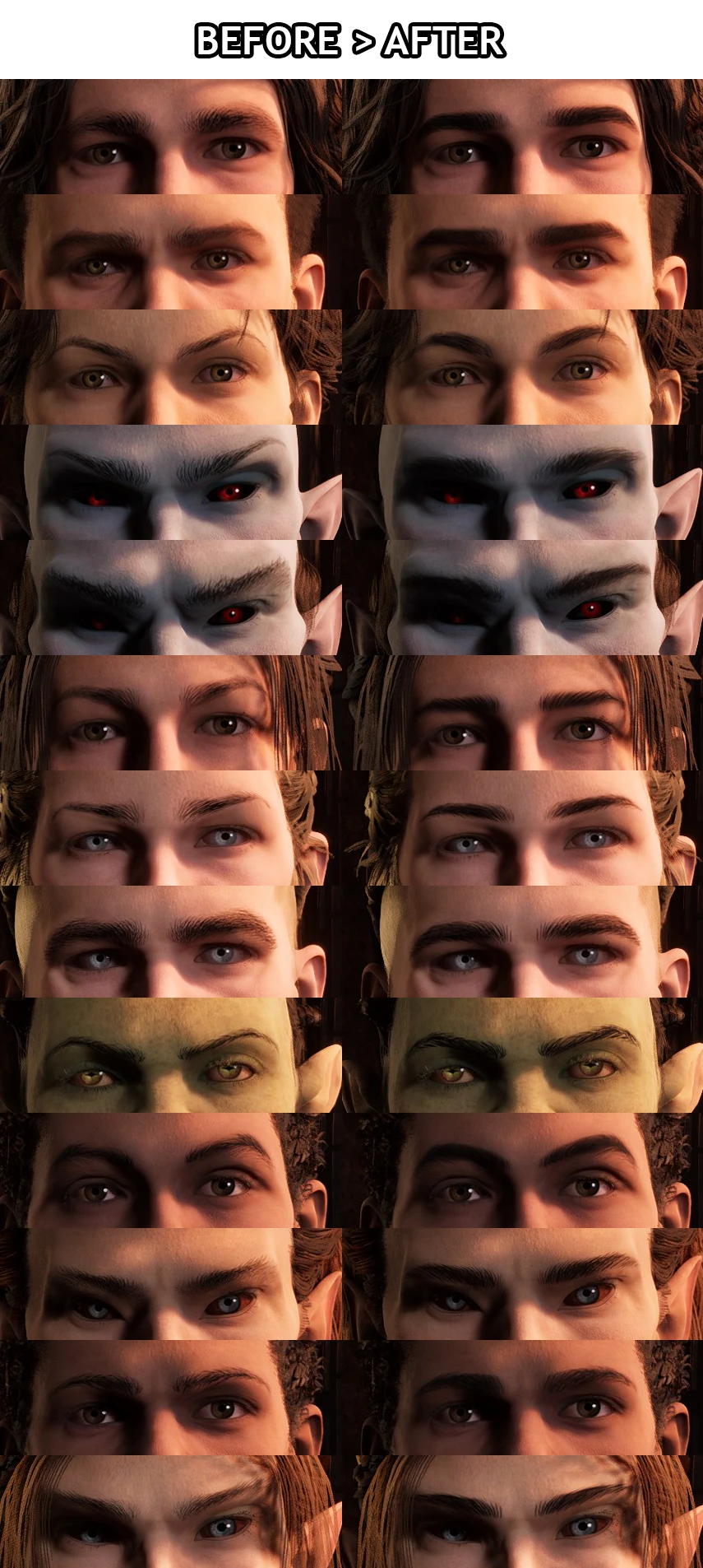 Заменяет текстуры бровей у персонажей, делая их более насыщенными и густыми.