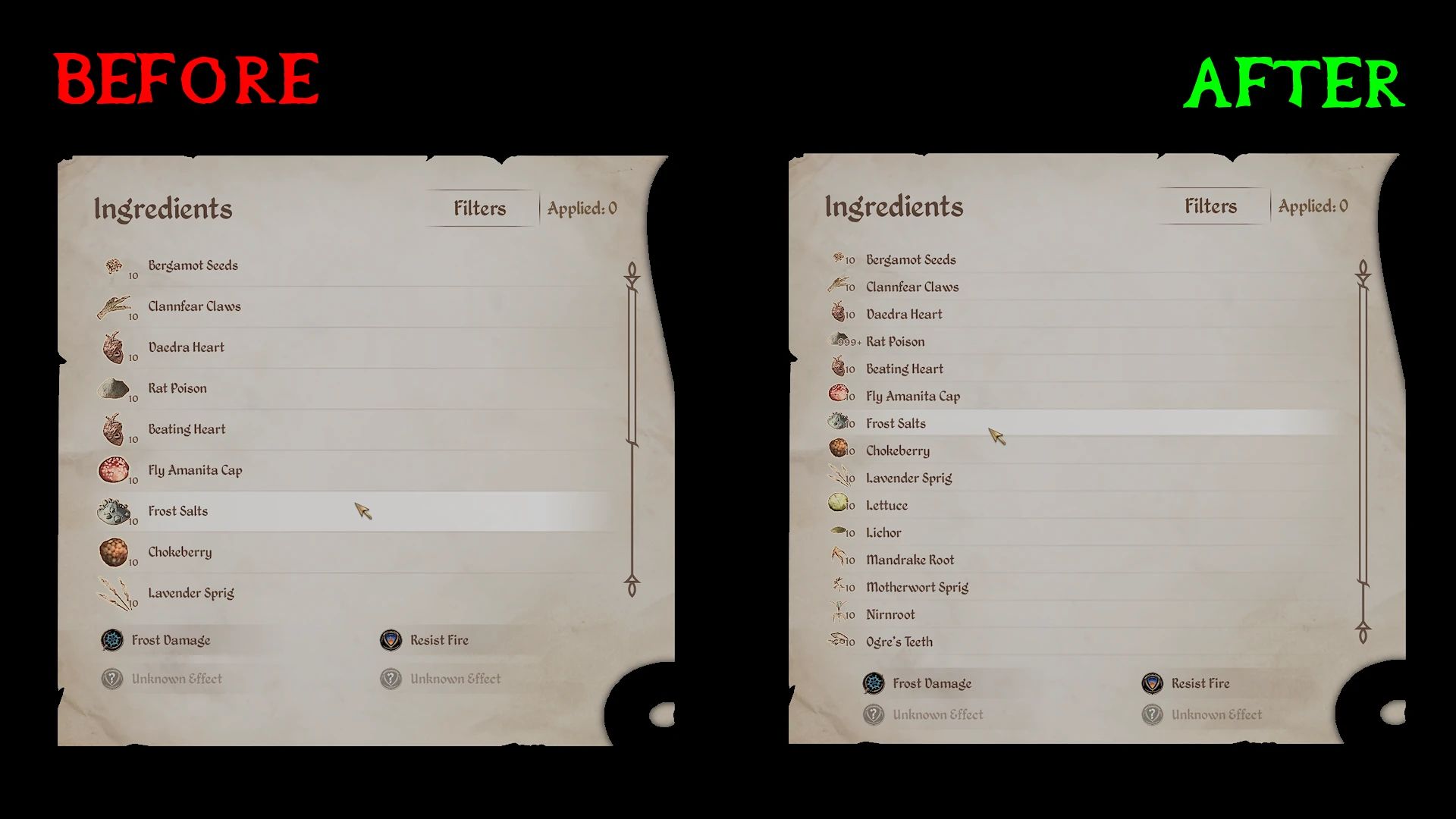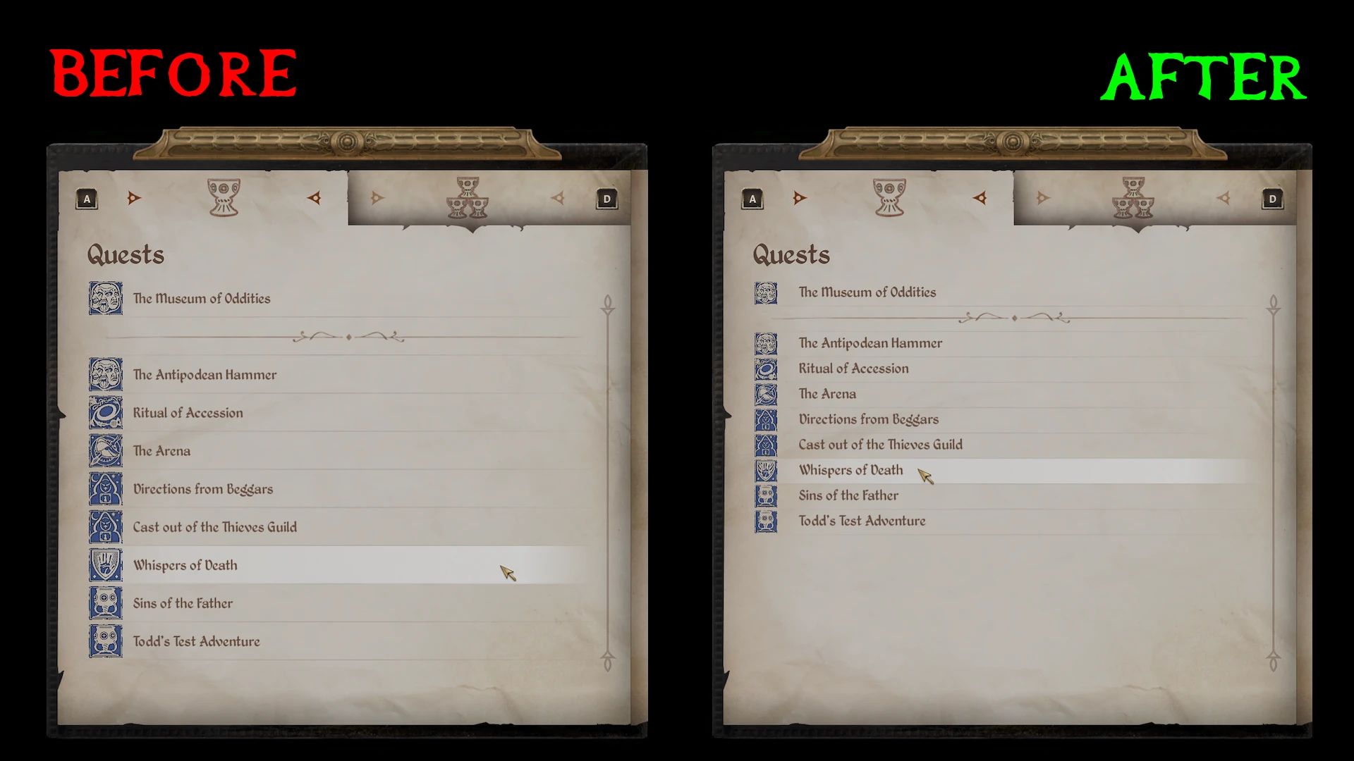 Данный мод вносит изменения в визуальном оформлении дневника (начиная от инвентаря, заканчивая статистикой и квестами). Автор регулярно обновляет мод, ознакомиться с изменениями можно в разделе "Скриншоты".