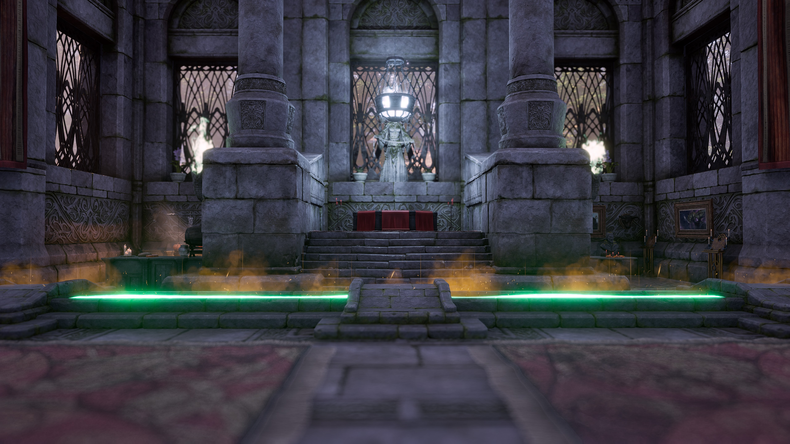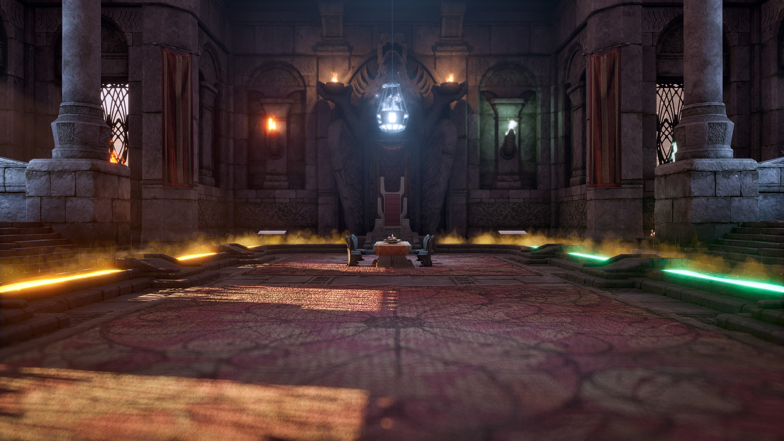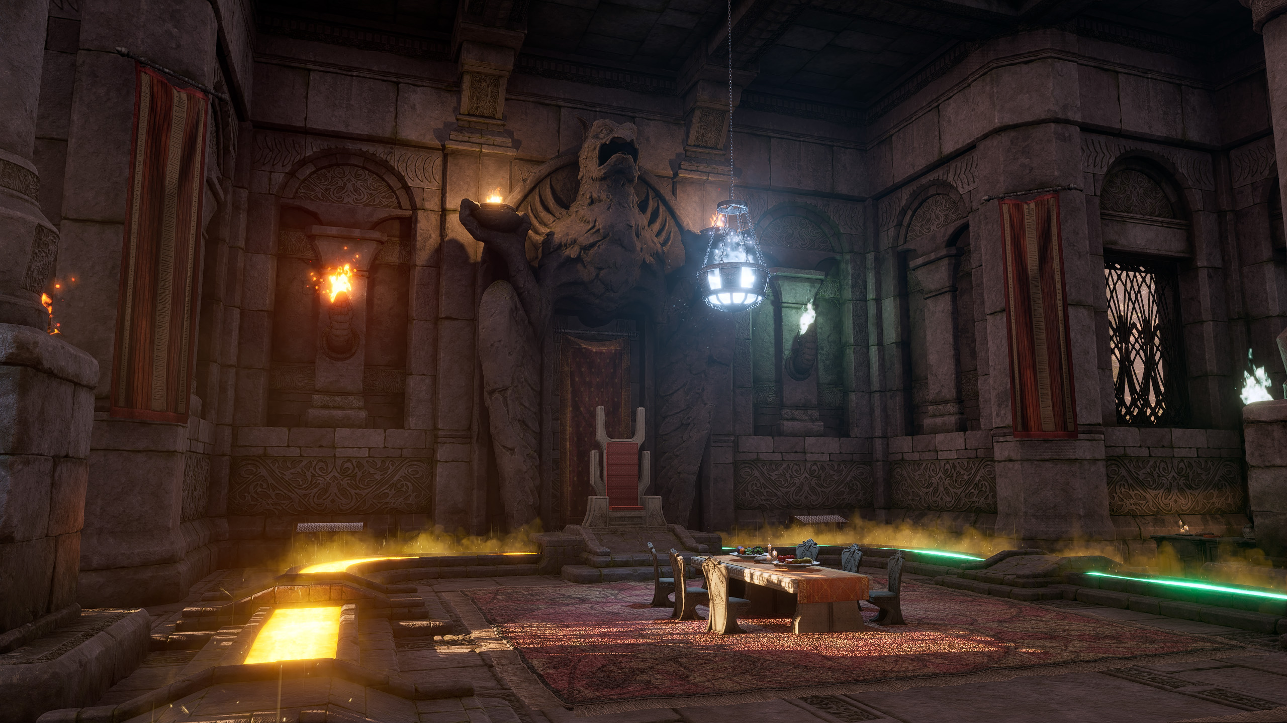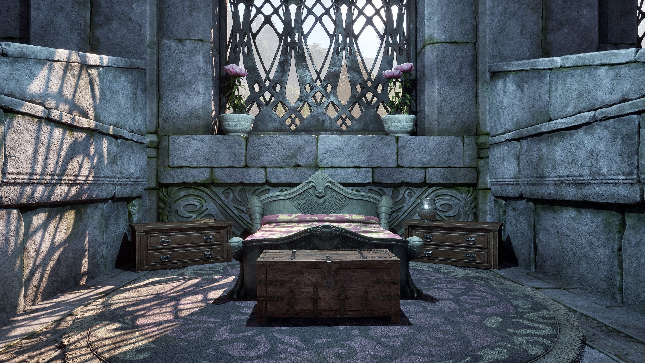В доме есть все необходимое: личный кабинет, кладовая, спальня, алтари для зачарования и создания заклинаний… и, конечно же, тронный зал, достойный Безумного Бога!