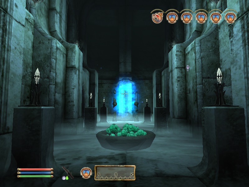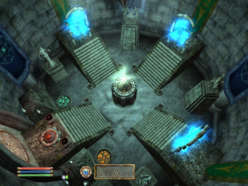 Зал Врат. Отсюда идут порталы в самые отдаленные части игрового мира. Первый портал ведет в Тестовую локацию (Соколиный Рай), откуда вы можете попасть также в локацию "мир Тодда". Второй портал ведет в Зал Эпох, под имперским дворцом и вот с ним будьте очень аккуратны. Если вы еще не прошли квест Гильдии Воров "Грандиозное Ограбление", то не выходите за пределы помещения, в которое попадете из Зала Врат, чтобы не поломать квест. Также не пользуйтесь порталами в Мискарканд, если не прошли квест основной сюжетки "Великий Велкиндский Камень" и в Маладу, если не прошли линейку квестов от Умбакано. Третий портал - в пещеры Брумы, для быстрого и скрытного перемещения в регион вокруг Брумы и в сам город.