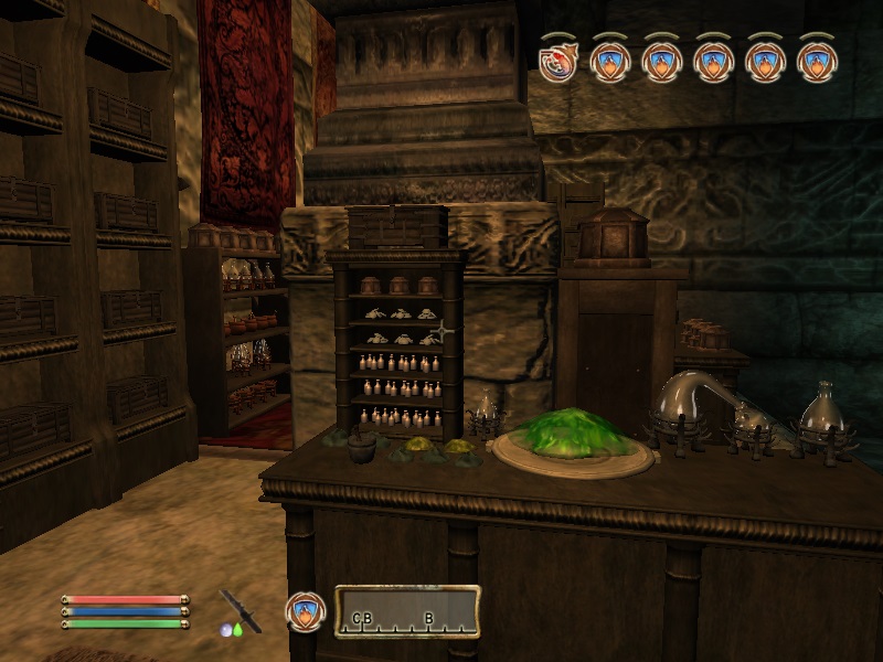 Лаборатория разделена на 2 помещения - алхимическая и магическая. В алхимической части находятся производители ингредиентов, которые раз в неделю создают все растительные и животные ингредиенты оригинального Обливиона и Дрожащих Островов. В магической части находится ларец, который раз в неделю производит камни душ.