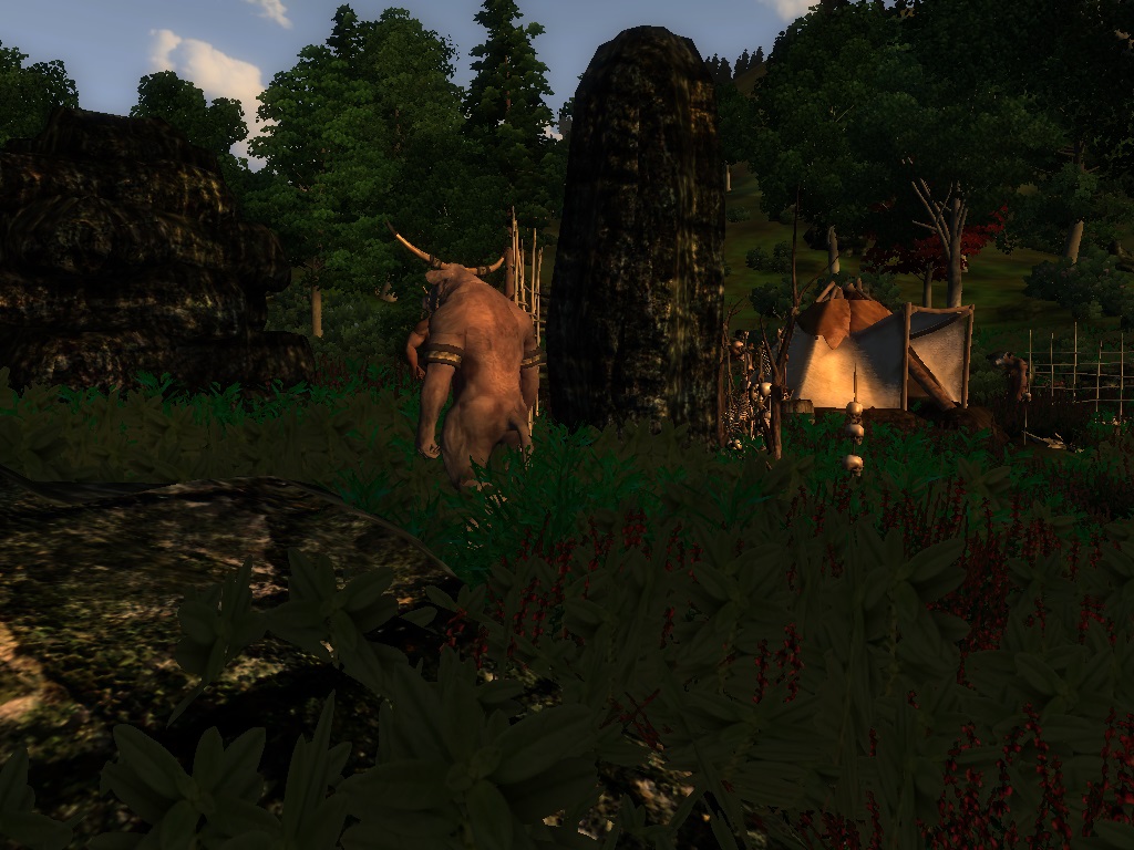 Каждый из этих лагерей можно разорить, в них имеется сундук с соответствующими региону алхим. ингредиентами, в дополнение стандартные уровневые сундуки, небольшие интерьеры для исследования и КУЧА минотавров. Серьезно, игрокам низкого уровня лучше избегать этих мест , как трассианской чумы. Помимо новых обитателей Сиродила - крупного рогатого скота, что теперь держат минотавры, появились: