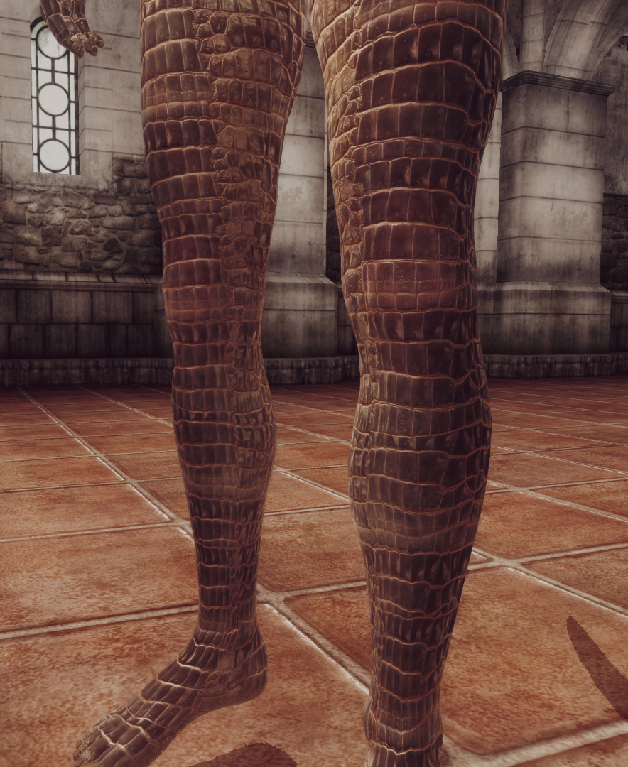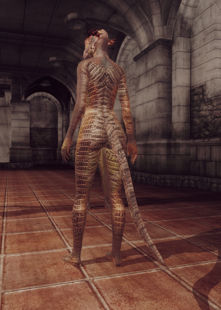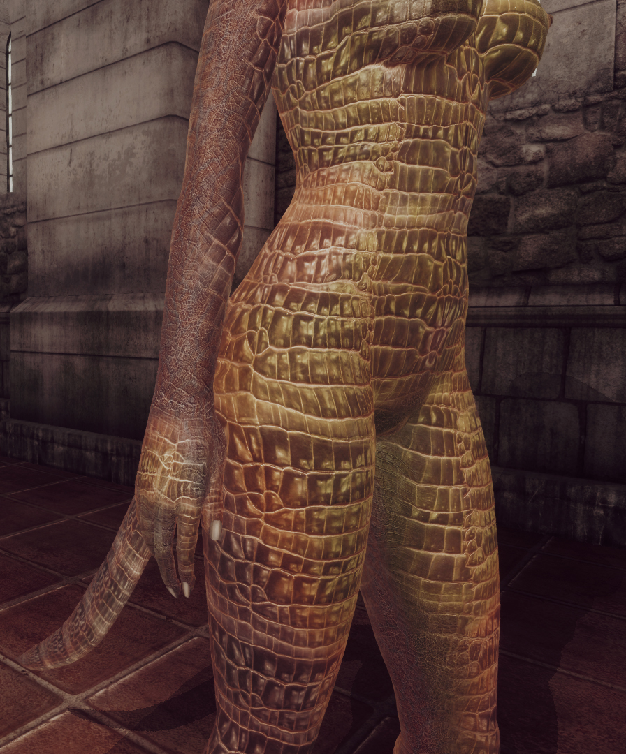 VKVII_Oblivion_Skin_Argonian_-_No_New_Hands — версия с неизменёнными женскими руками. Это для тех, кто использует женское тело, которое требует классических рук (или использует маленькие руки от Geechan).