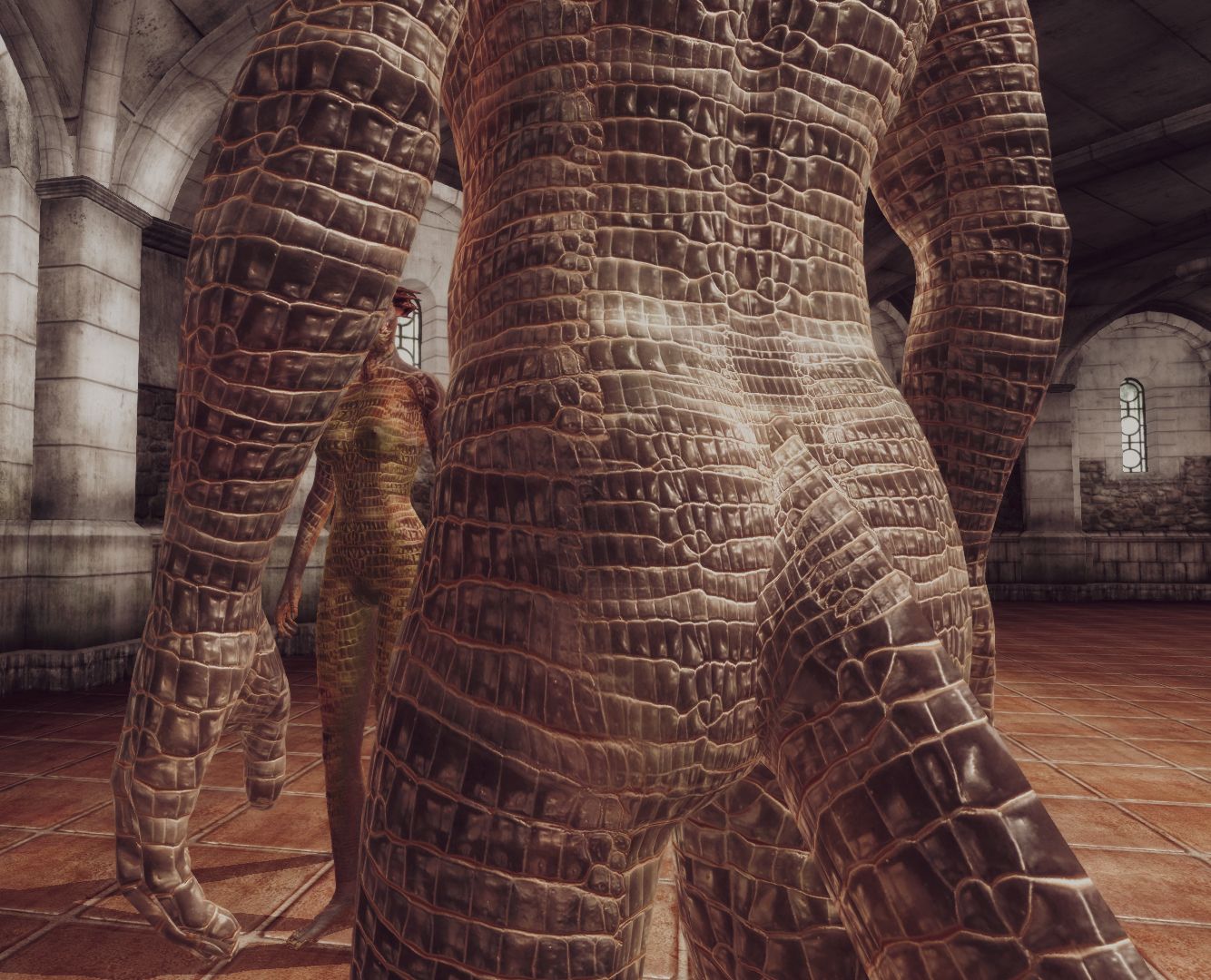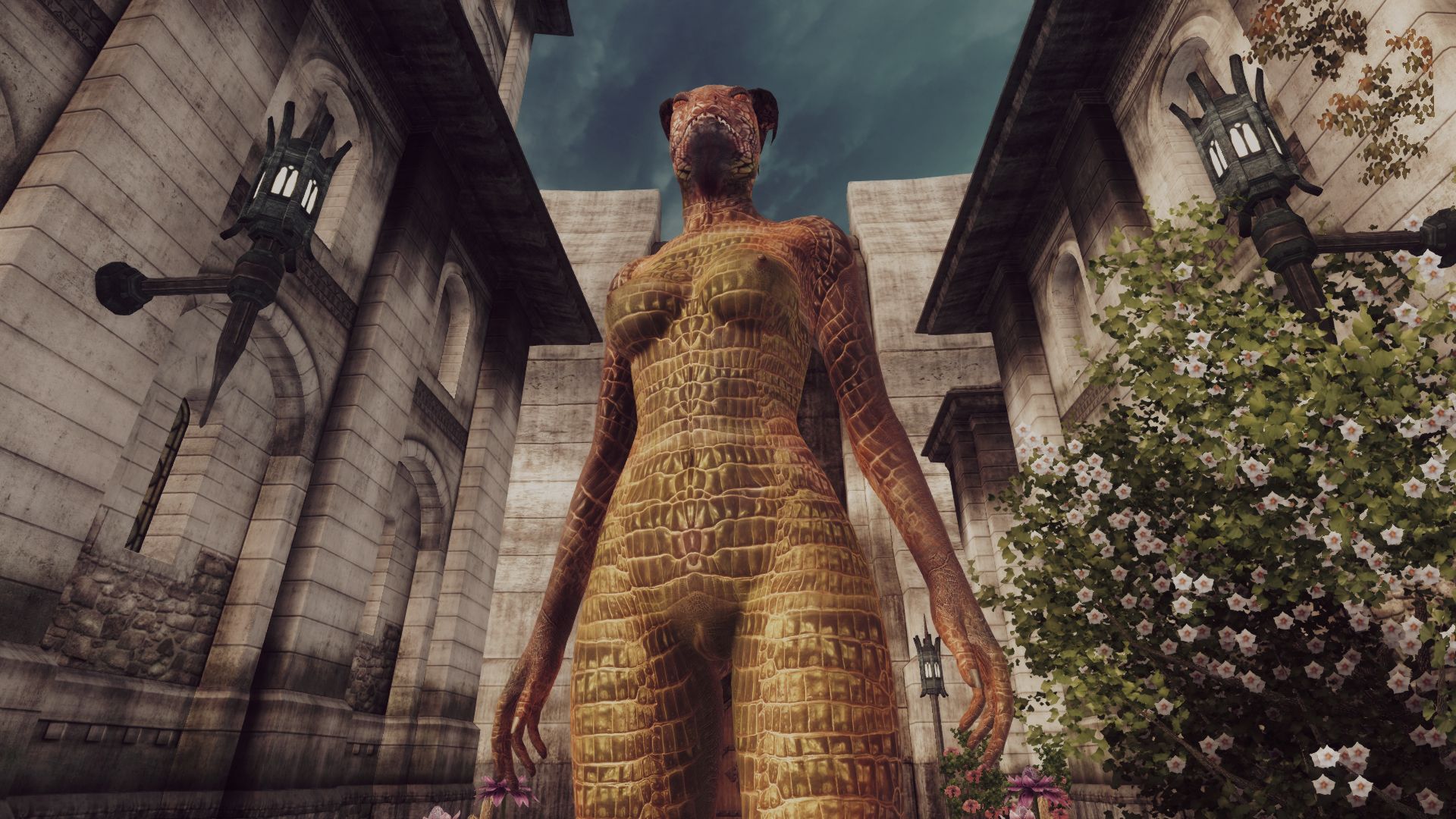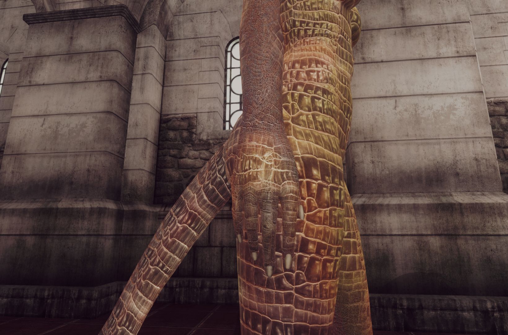 VKVII_Oblivion_Skin_Argonian_-_No_New_Hands — версия с неизменёнными женскими руками. Это для тех, кто использует женское тело, которое требует классических рук (или использует маленькие руки от Geechan).
