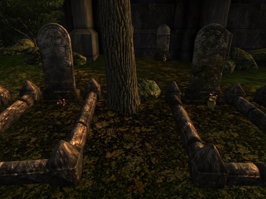 Кладбища и склепы Сиродила похоже, никогда не посещаются. Никаких цветов на надгробиях или подношений покойному.