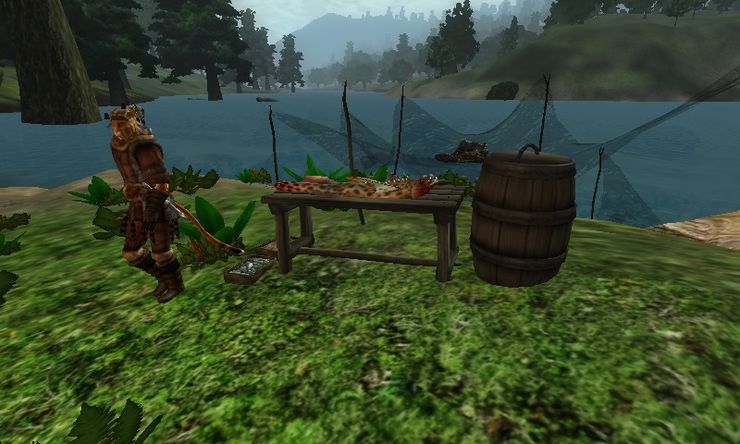 ...Э-э, а где же тогда эти охотники? Много беглых огузков, да, но ни одного охотника не видно. Итак, уважаемый автор, вдохновленный Skyrim-ом (он всегда ценил присутствие охотников в дикой местности Скайрима: это делало мир более обитаемым) и этой случайной строчкой диалога, создал этот мод, добавляющий в Сиродил в общей сложности 16 лагерей рыбаков/охотников. Некоторые из нпс в этих лагерях будут выступать в качестве торговцев едой и ингредиентов. Кроме того, в пустоши было добавлено 10 охотников с напарниками или собаками, ходящих вдали от любых охотничьих лагерей, хотя эти нпс торговать уже не станут, им некогда :).