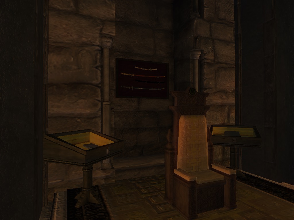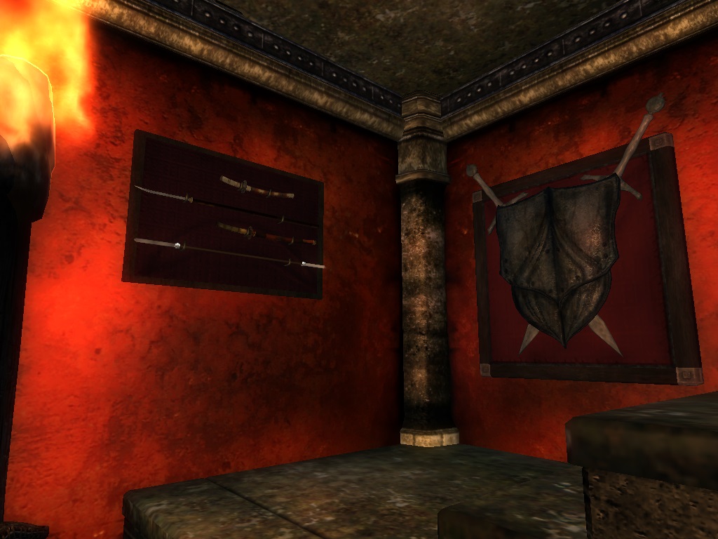 - Во всех залах гильдии бойцов выставлены витрины с Акавирским оружием, что напоминает об их создании как организации, основанной Императором-Властелином во вторую эру.