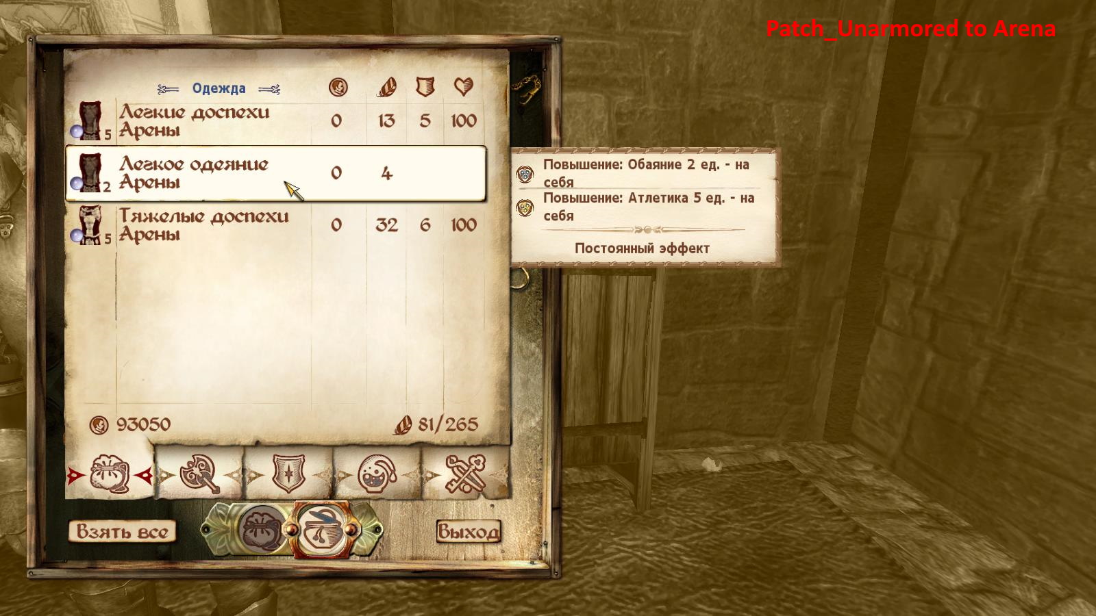 Для установки патча, извлеките файл New skill - Unarmored_Arena Path.esp из архива New skill - Unarmored_Arena Path.7z в папку /data . - Подключите этот файл-esp в вашем мод-менеджере.