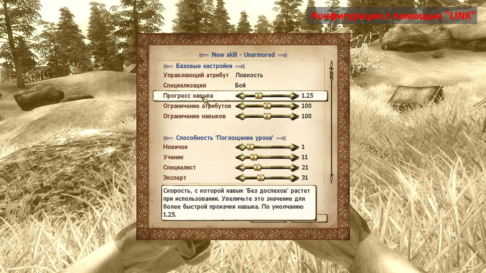 Этот мод имеет поддержку LINK, которая позволит вам настроить основные параметры конфигурации и выбрать предпочтительный для вас режим развития навыка, прямо в игре.