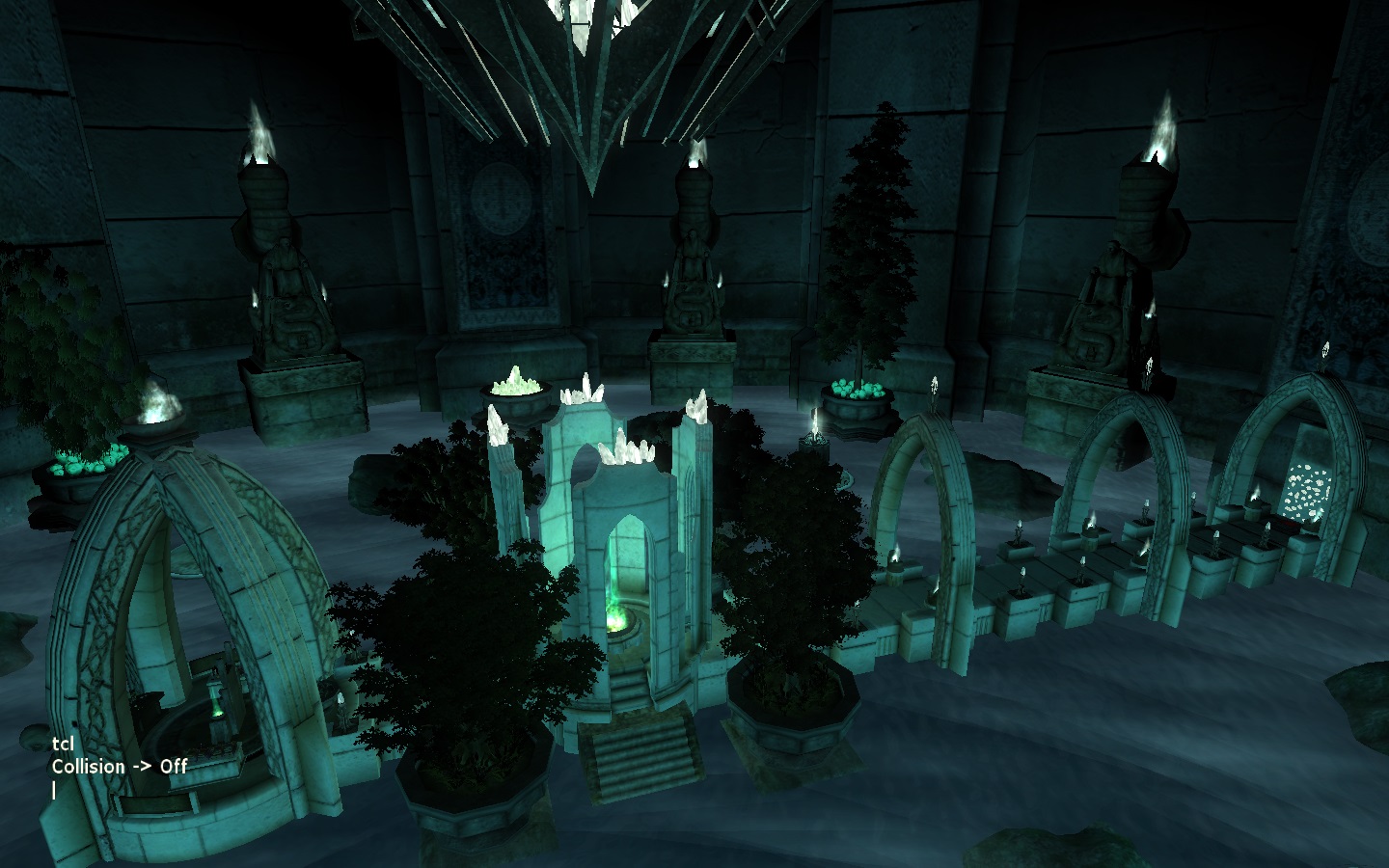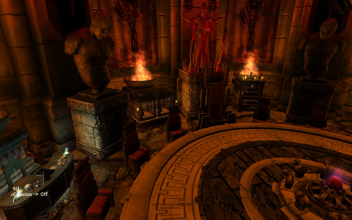 Даэдрический храм. Огромный зал со статуями 16 Лордов Дейдра. Чисто декоративное помещение без реального функционала.