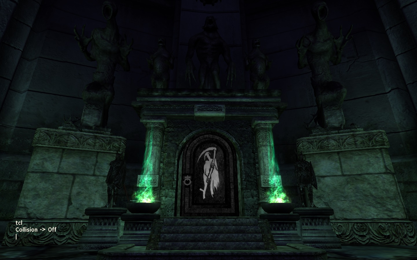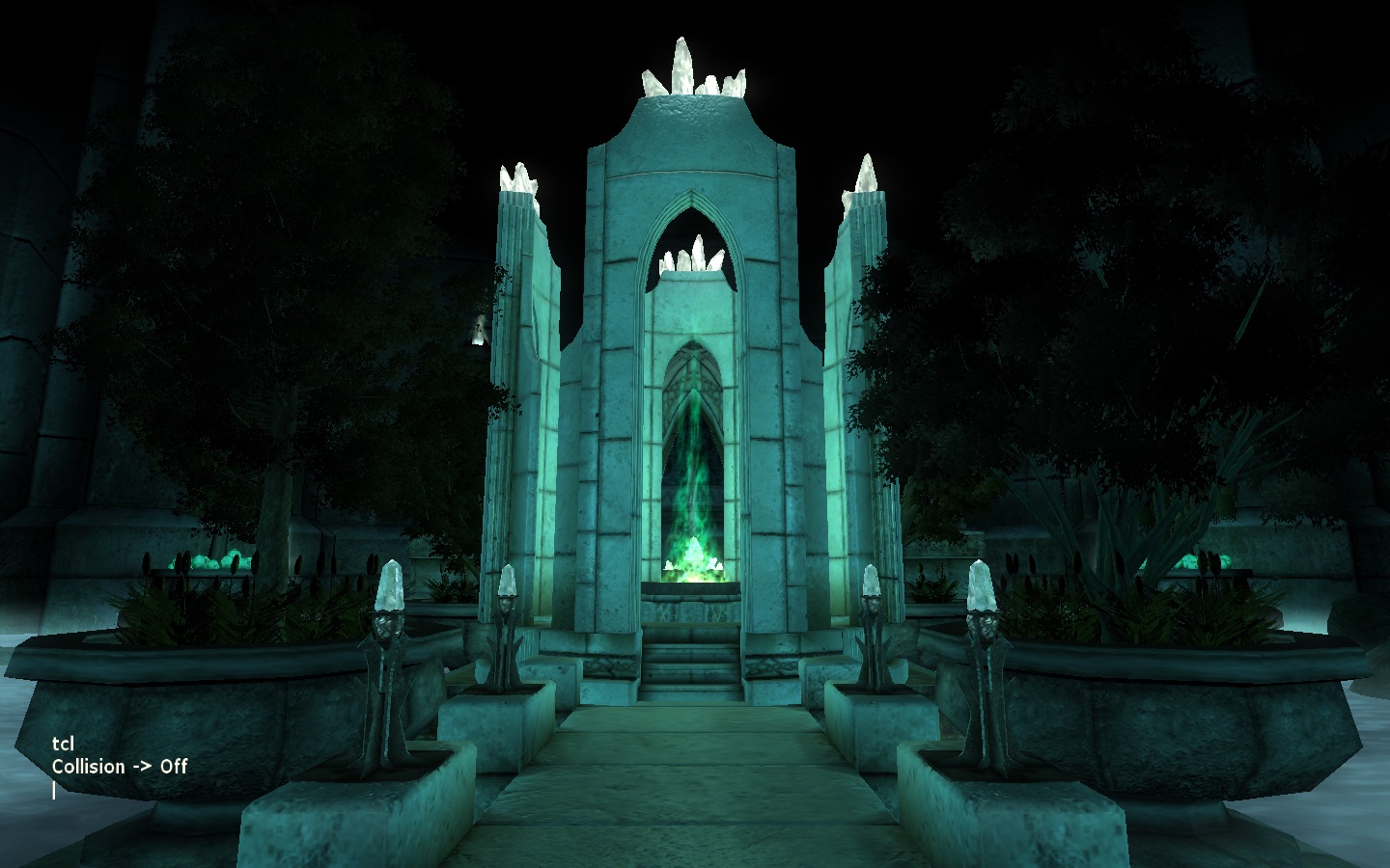 Врата Миров. Быстрый доступ в отдаленные регионы Сиродиила через порталы. Первый портал ведет в Тестовую локацию, второй в Зал Эпох под Имперским Городом, третий в форт "Приют Ворона", четвертый имеет подводный выход южнее Лейавина.