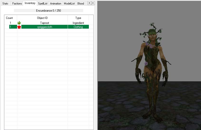 Идея одежды из цветов сприггана уже была реализована Growlf в моде GROWLFS HOT CLOTHES & ARMOR https://tesall.ru/files/modi-dlya-oblivion/sborniki-i-magazini/1389-growlfs-hot-clothes-armor-v5-2-full Но там она была предназначена только для женщин, основана на реплейсере женского тела Grolf, чар не имела и продавалась в магазине.