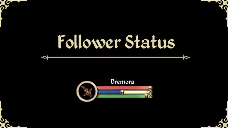 Этот мод отображает на экране статистику ваших соратников (компаньонов), включая статистику призванных вами существ. К ним относятся их имя, здоровье, магия, выносливость и экипированное оружие — все это упаковано в отдельный виджет.
