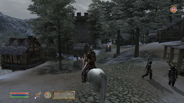 В городе есть часовня с небольшим кладбищем, таверна, кузница и несколько домов. Да, и острог с тюремной камерой на случай, если вы криминальный отброс. Как и в любом городе в игре соотношение стражников и мирных жителей довольно велико. Не считая стражников, в городе есть более десяти жителей. В отношении дорог были внесены лишь небольшие изменения.