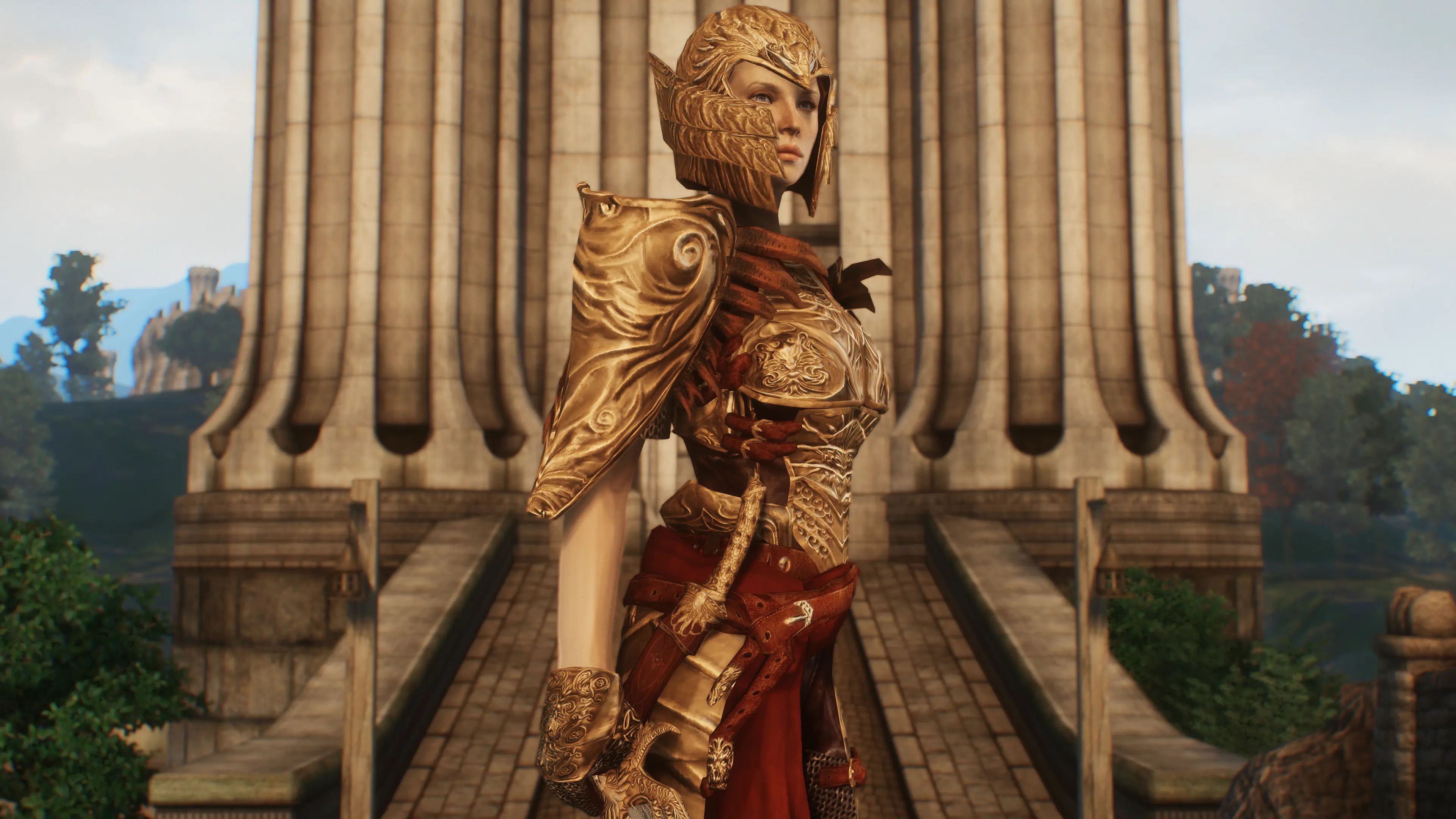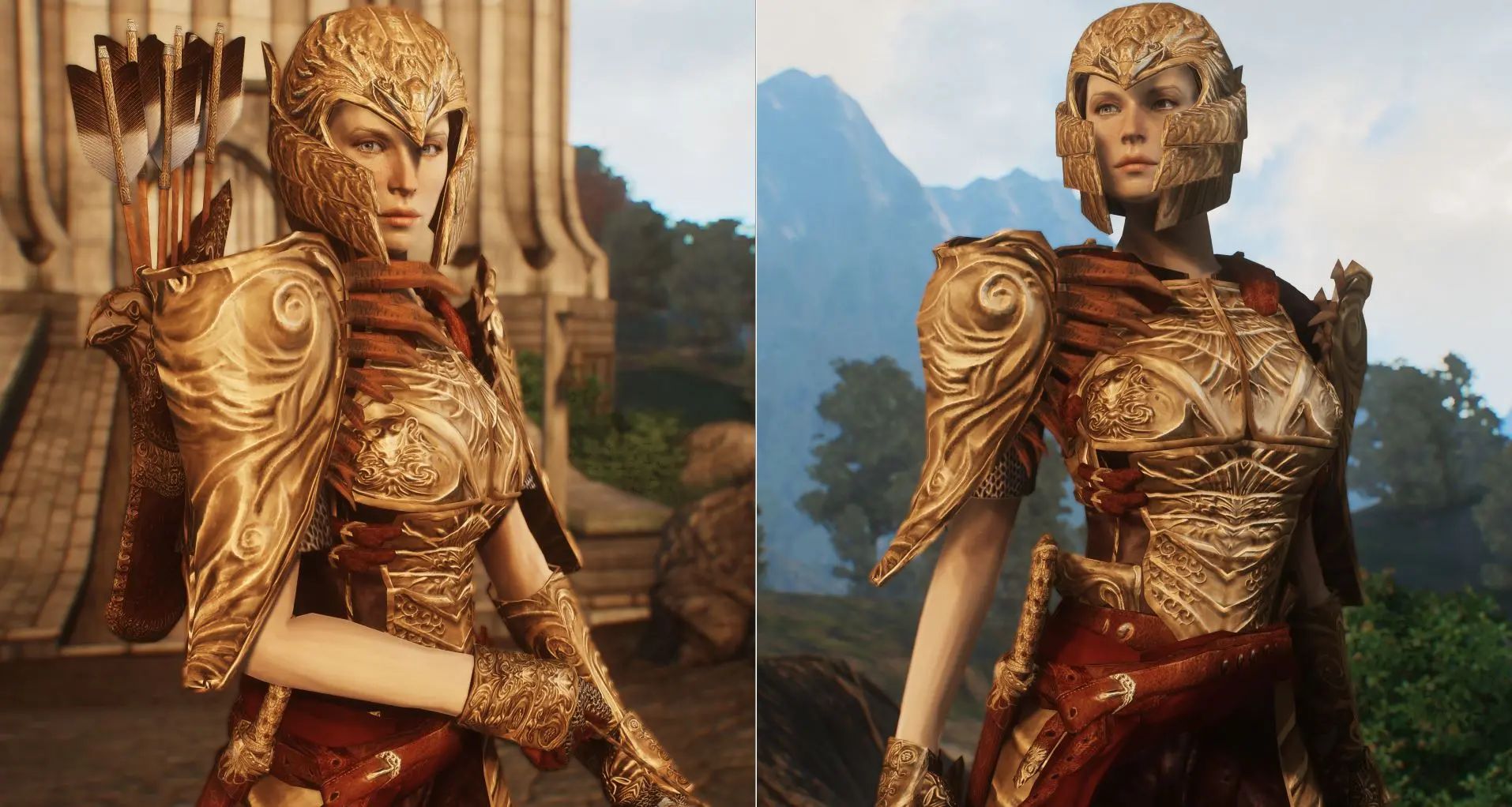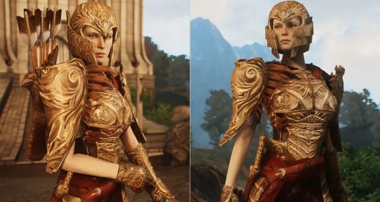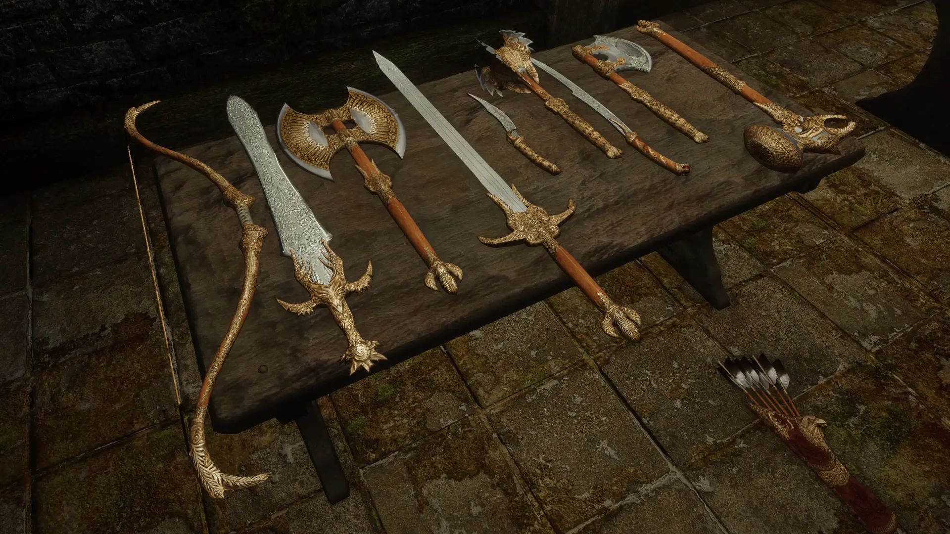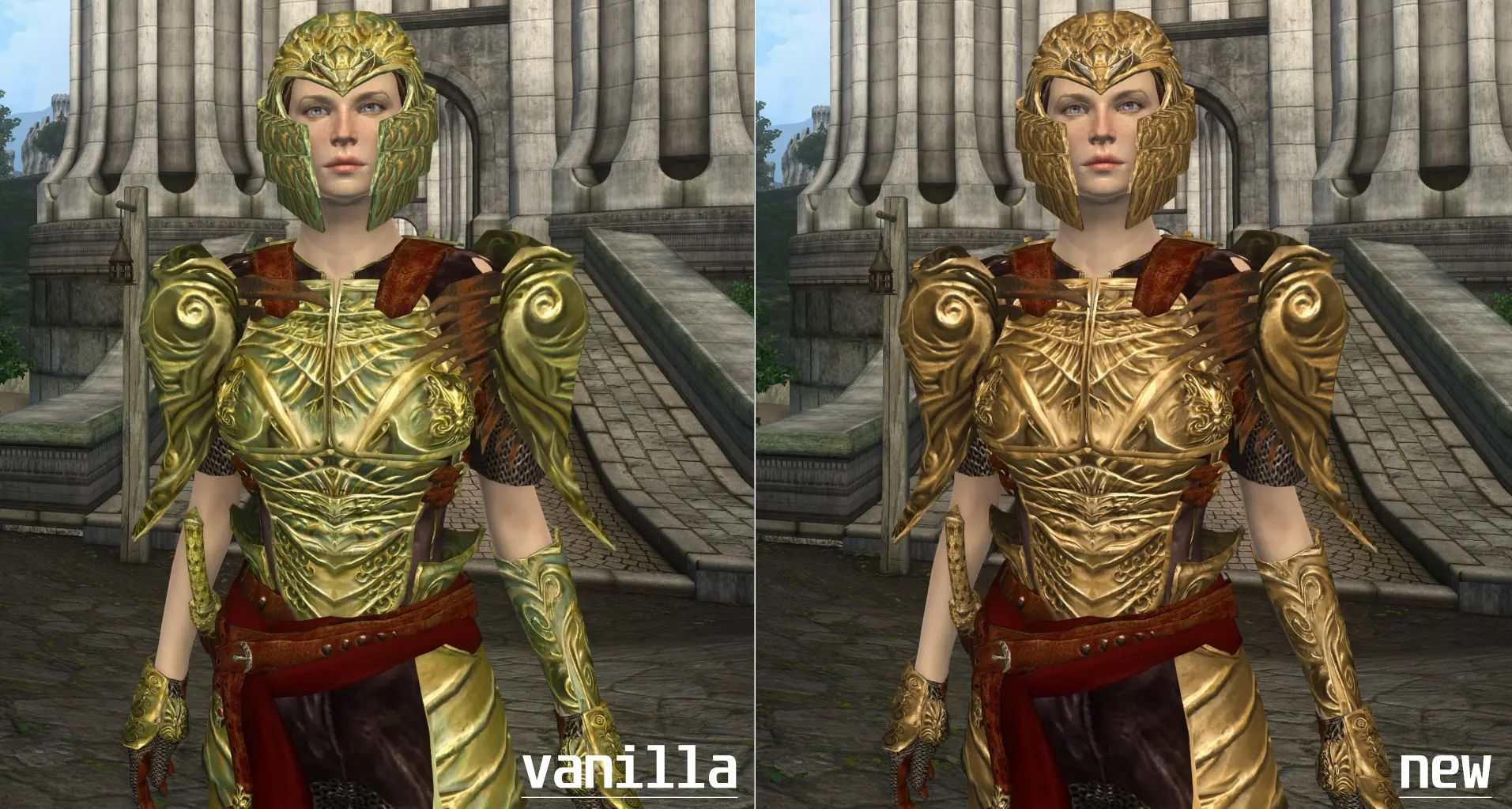 Полный набор текстур эльфийсой брони и оружия в золотом цвете.