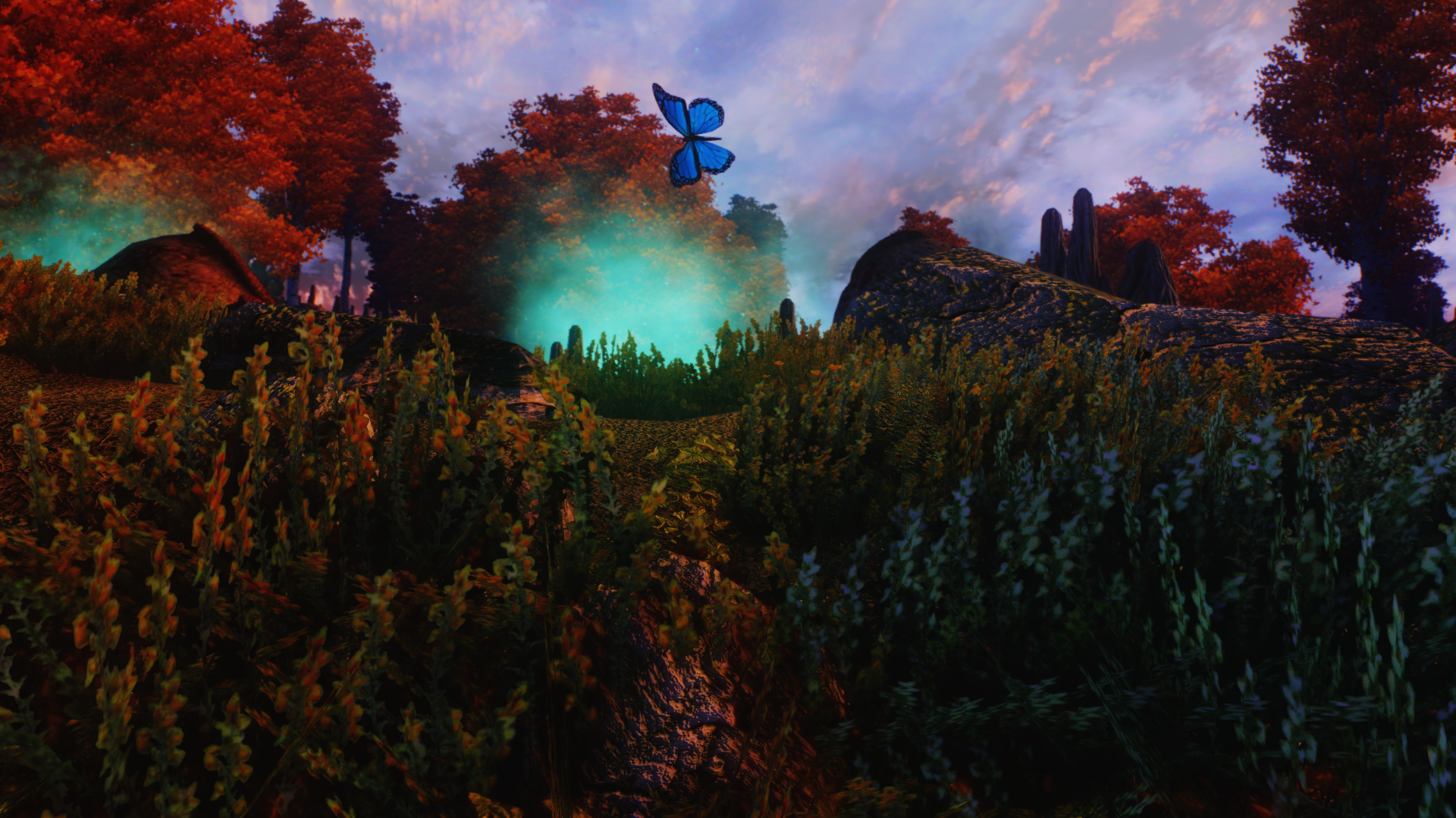 Добавляет больше магических огней, светлячков, фей и бабочек в открытый мир рандомным образом в пределах видимости игрока (динамически появляются и исчезают). Частота появления настраивается в INI файле. Для ненавязчивого режима уже подобрано значение 70. Чем больше значение, тем реже они будут появляться. Чем меньше значение, тем чаще они будут появляться, можете менять на ваш вкус, но для ненавязчивого эффекта меньше 70 точно не рекомендуется. Феи, бабочки и огоньки имеют разные оттенки (на скриншотах показаны лишь феи с золотыми огоньками, на самом деле их больше вариантов, все они выбираются скриптом случайно).