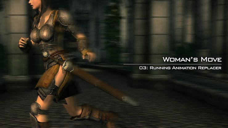 Если у вас уже установлен другой реплейсер анимации, дополнительно скопировать esp фалй из папки "Woman's Move - Running Animation Replacer - esp" в папку Data игры и поместить этот esp в конец списка модов в мод менеджере.